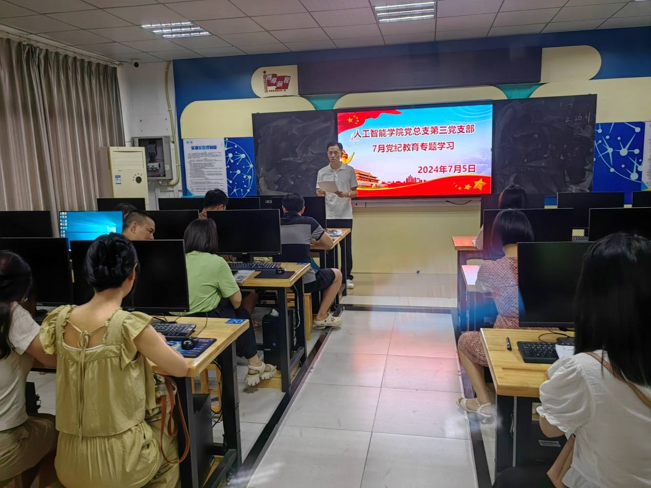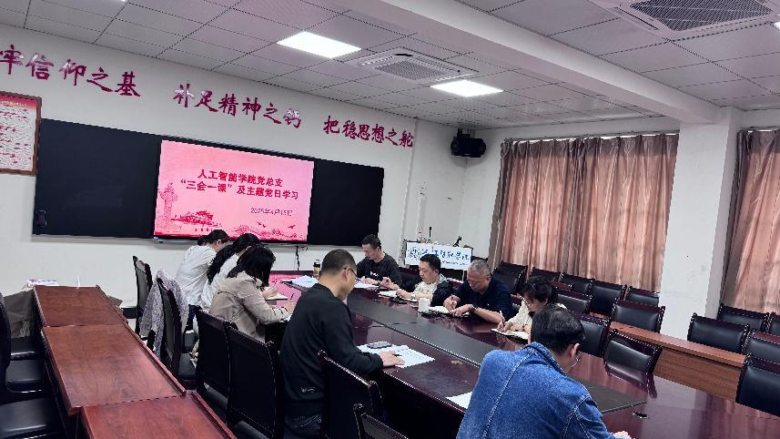 2024年11月5日,人工智能学院党总支在信科楼503开展11月“三会一课”和主题党日学习教育专题会。会议由人工智能学院党总支书记熊泽明主持,总支委员、二级学院中干、支部书记等9人参加。 会上,总支宣传委员杨勇组织学习了八项内容,具体包括:习近平总书记在庆祝中华人民共和国成立75周年招待会上的重要讲话精神 ;习近平总书记在省部级主要领导干部学习贯彻党的二十届三中全会精神专题研讨班开班式上的重要讲话精神;...
