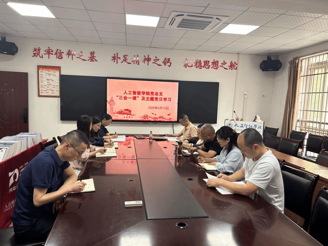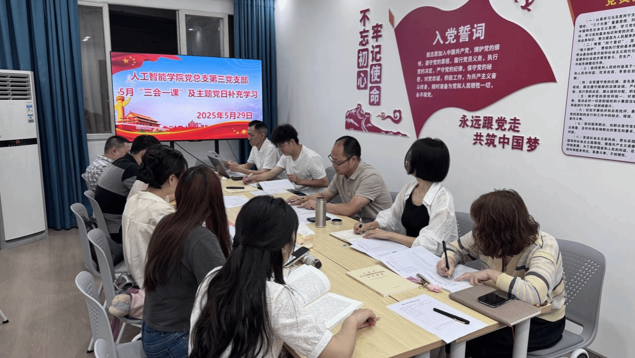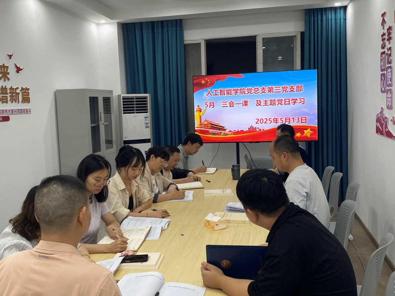 2025年5月13日,人工智能学院第二党支部在信科楼503会议室召开5月三会一课和主题党日学习,支部9名党员参加,本次会议由支部书记雷蕾主持。支部宣传委员张安汤组织与会人员认真学习了“《习近平关于加强党的作风建设论述摘编》专题三:作风问题核心是党同人民群众的关系问题”、“中央八项规定及其实施细则”、“中央八项规定精神相关制度规定-《关于解决形式主义突出问题为基层减负的通知》”、“纪言:八项规定改变中国”、“中共中央办公厅国务院办公厅关于加快构建普通高等学校毕业生高质量就业服务体系的意见(...