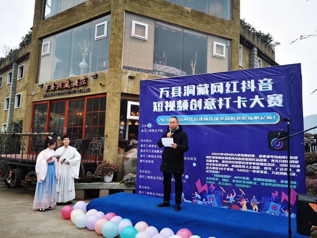 2021年1月4日上午10点,由重庆三峡职业学院主办,重庆三峡职业学院人工智能学院、重庆市万县洞藏酒业有限公司、重庆三峡职业学院人工智能学院农业电商直播实训基地承办,重庆市万县洞藏酒业有限公司赞助,举办的“万县洞藏网红抖音短视频创意打卡大赛”正式开幕。
