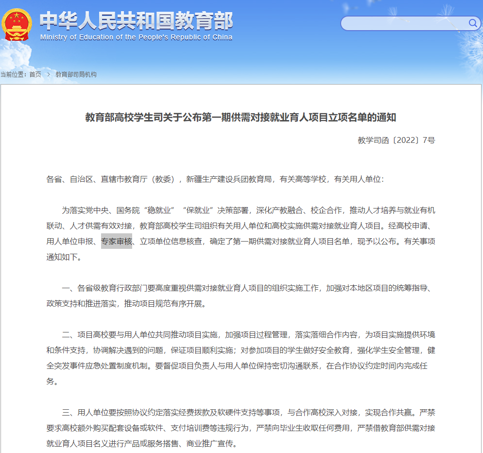 该项目是教育部高校学生司旨在落实党中央、国务院“稳就业”“保就业”决策部署,深化产教融合、校企合作,推动人才培养与就业有机联动、人才供需有效对接,组织有关用人单位和高校而实施的供需对接就业育人项目。