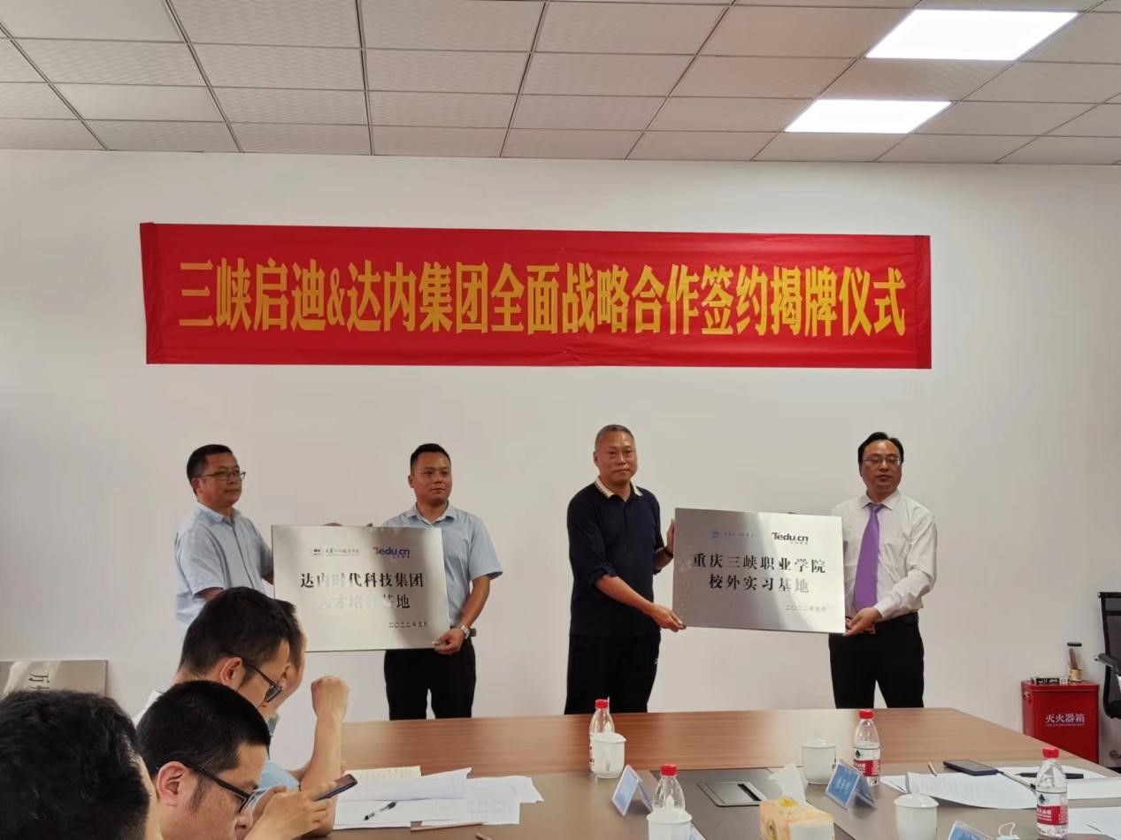 5月12日下午,在重庆万州三峡启迪孵化器有限公司,重庆三峡职业学院与达内时代科技集团共同签约“达内时代科技集团人才培养基地”和“重庆三峡职业学院校外实训基地”,学院副院长袁德梽、人工智能学院党总支书记、院长熊泽明、副院长余淼参与了签约授牌仪式。