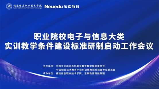 2022年8月24日,职业院校电子与信息大类实训教学条件建设标准研制启动工作会议在大连顺利召开。本次会议由全国工业和信息化职业教育教学指导委员会,中国职业技术教育学会职业教育现代装备专业委员会主办,东软教育科技集团与福建信息职业技术学院联合承办。会议严格落实疫情防控的要求,通过线上线下相结合,实时直播的方式进行。