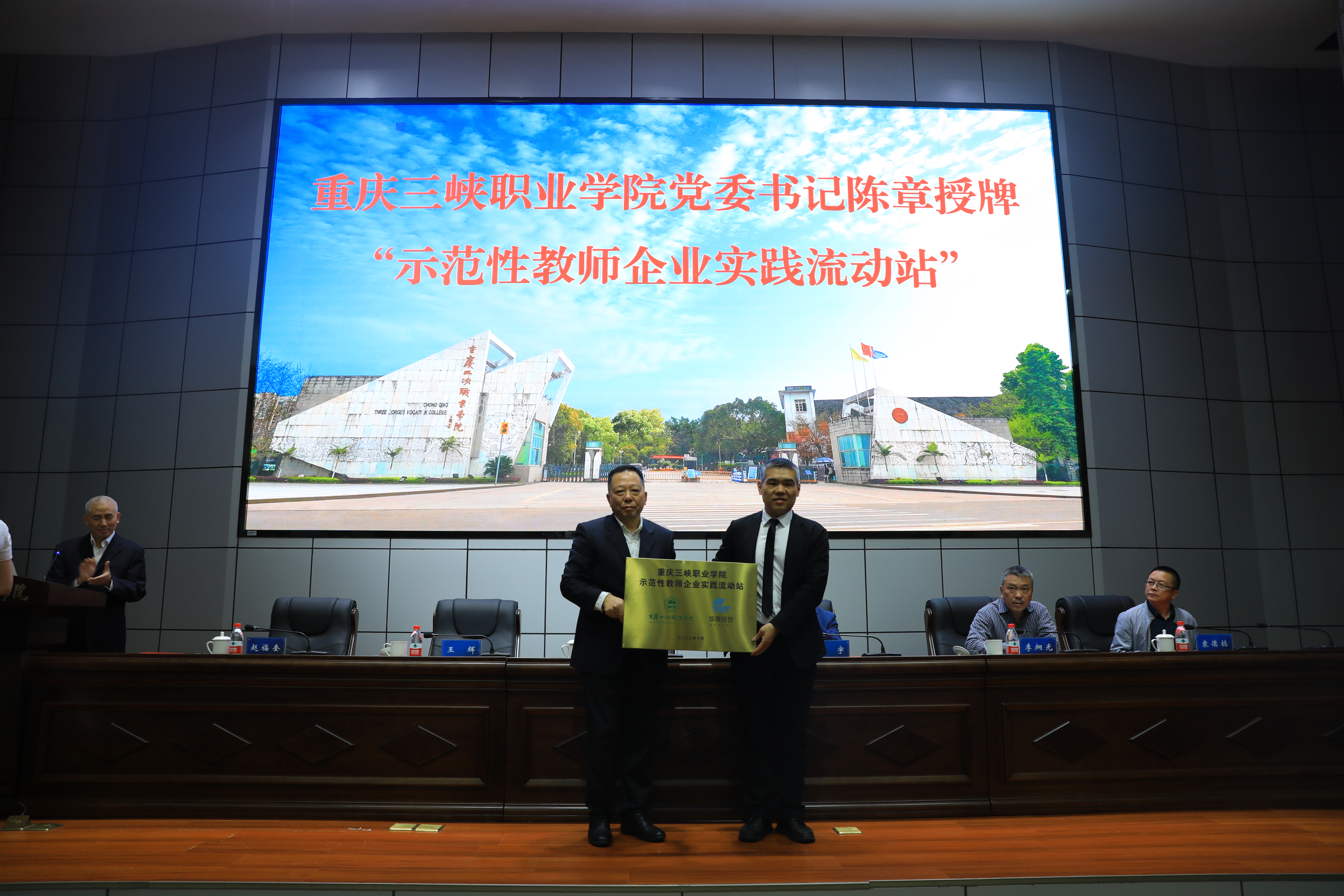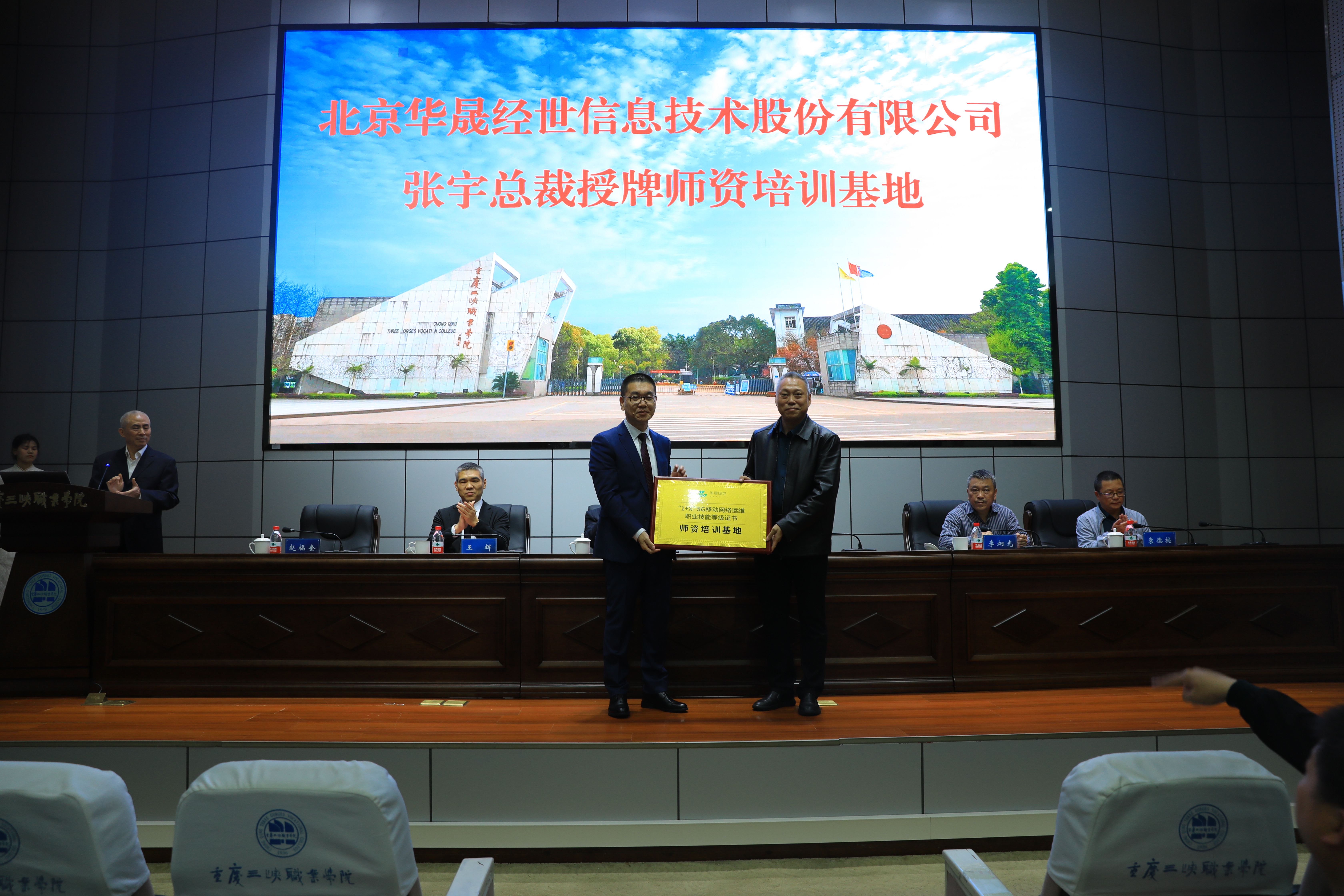 揭幕仪式上,李炯光院长及华晟经世张宇总裁分别发表致辞,公布了现代产业学院首届理事会成员名单并颁发聘书。学校授牌华晟经世“示范性教师企业实践流动站”,华晟经世授牌重庆三峡职业学院“1+X 5G移动网络运维职业技能考核证书师资培训基地”。