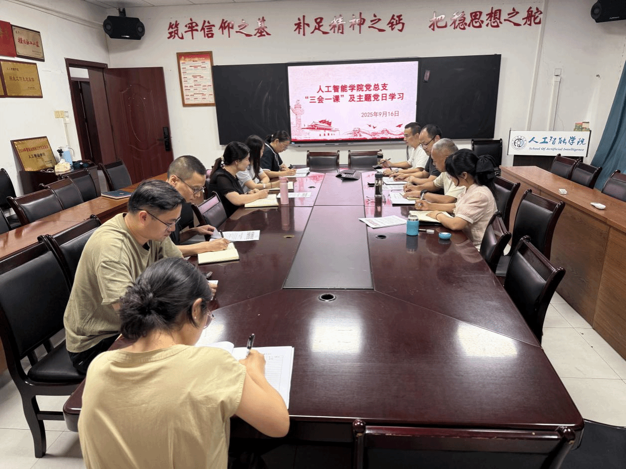 为进一步推动学习教育走深走实,切实将理论学习与工作实践深度融合,2025 年 9 月 16 日,人工智能学院党总支在信科楼 503 会议室开展8-9月“三会一课”和主题党日学习教育专题会。会议由党总支书记熊泽明主持,总支委员、二级学院中干、支部书记等9人参加。