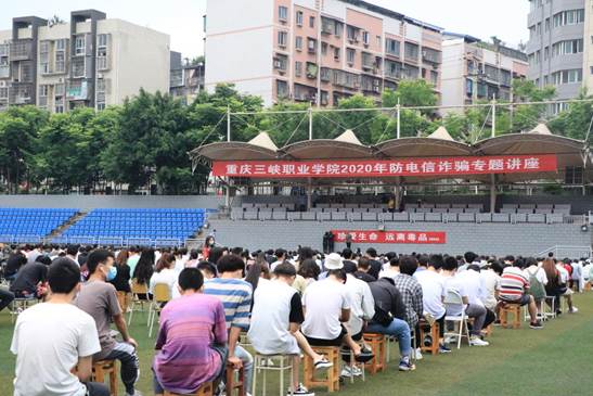 为了普及防诈骗知识,增强学生防诈骗能力,营造良好的校园氛围。我院于2020年5月31日下午5:30在足球场成功举办了电信防诈骗讲座。讲座由万州区公安局反诈骗中心陈晓天警官主讲。人工智能学院全体师生1000余人参加了此次讲座。