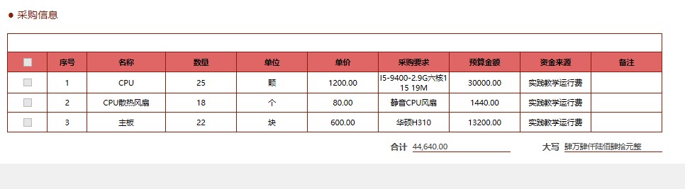 一、采购项目名称及数量 (项目总预算:44640.00 元)