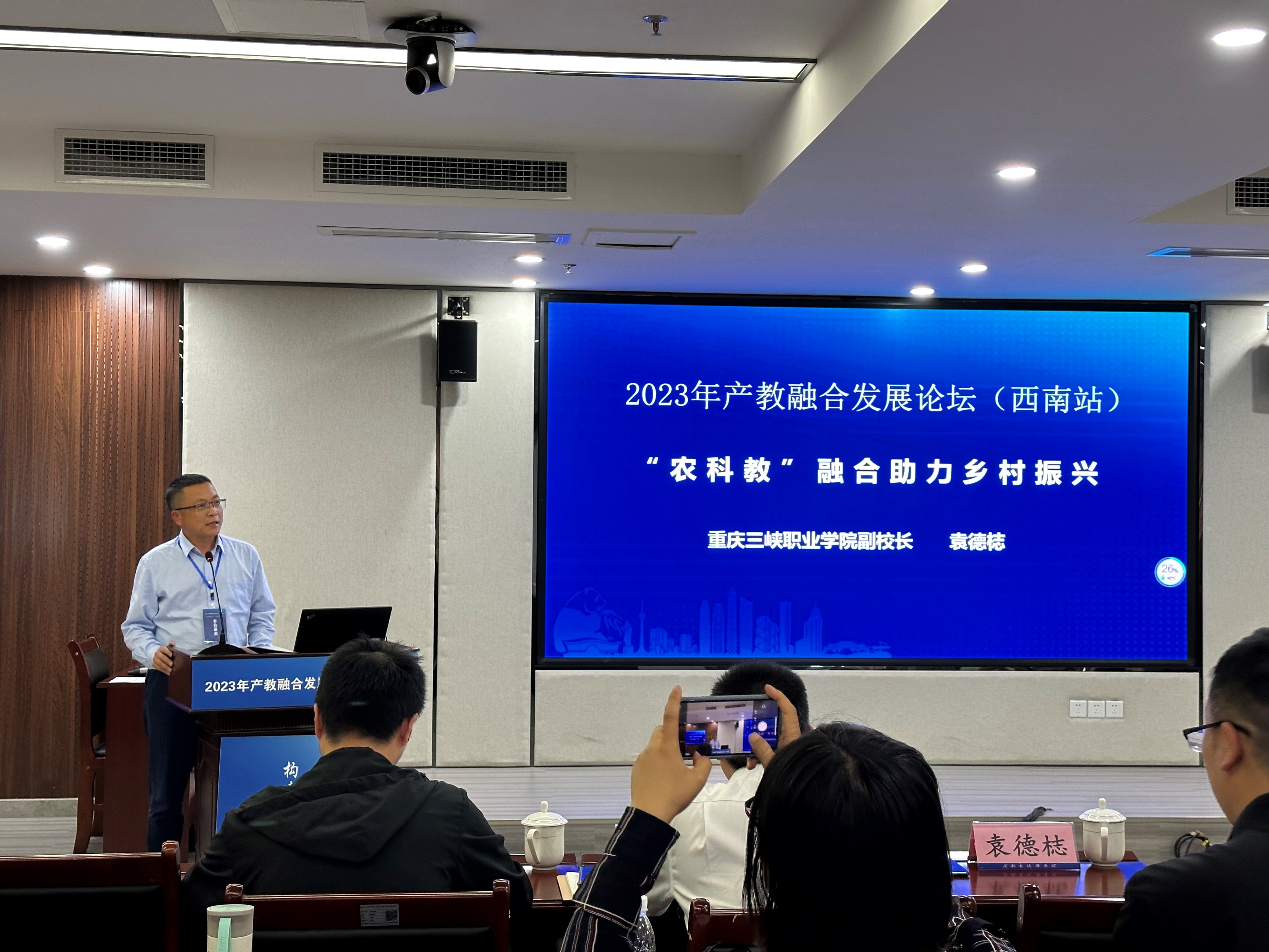 同时分别召开了两个平行论坛,由来自职业院校以及企业的嘉宾进行产教融合实践案例分享,并进行产教融合协同育人研讨,为与会者提供了更多的交流机会,从不同角度和层面探讨产教融合的实践与发展趋势。袁德梽副校长作了《“农科教”融合助力乡村振兴——重庆三峽职业学院“田间”探索与实践》主题分享。