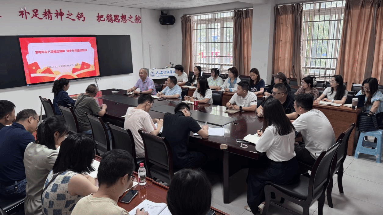 为深入贯彻中央八项规定精神学习教育,按照学校党委部署,6月10日,人工智能学院党总支书记、院长熊泽明在信科楼503教室讲深入贯彻中央八项规定精神学习教育专题党课。人工智能学院师生党员等40余人参加。