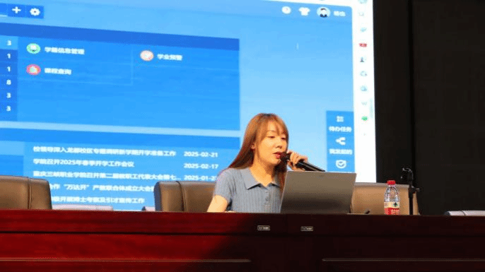 为了引导新同学尽快适应大学环境、明确学习目标、规划未来发展、筑牢安全防线,为即将开启的大学生活奠定坚实基础,人工智能学院于2025年9月6日在大学生活动中心开展2025级新生入学教育。人工智能学院党总支书记、院长熊泽明、副书记丁翠娟、副院长吴勇帑、教学科长杨勇、学工科长王蓉、专职组织员崔艳、团总支书记张安汤、党政办公室主任兰小林、各专业主任以及2025级全体辅导员老师和新同学参加了本次教育活动。活动由丁翠娟副书记主持。