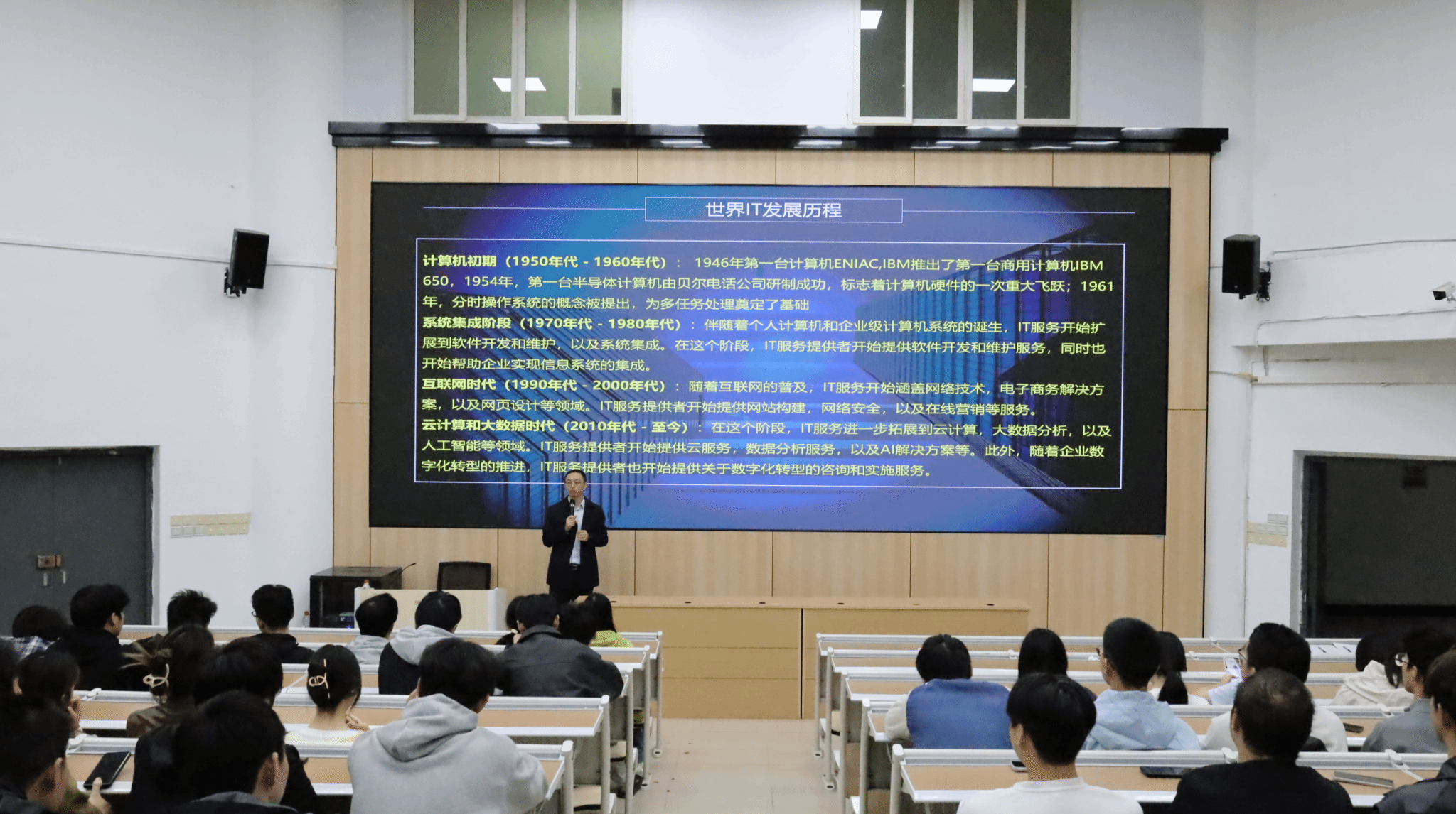 2025年10月21日,人工智能学院在信科楼 220 教室举办“ICT 行业发展趋势暨实习就业分析”专题讲座,本次讲座由华晟经世教育集团项目经理、高级网络工程师阳鹏主讲,2025级200余名学生代表参与。本次活动以 “就业引航” 为核心,围绕专业建设夯实就业基础,依托 “我为同学办实事” 解决就业难题,借共青团助力拓宽就业渠道,全方位为学生就业保驾护航。