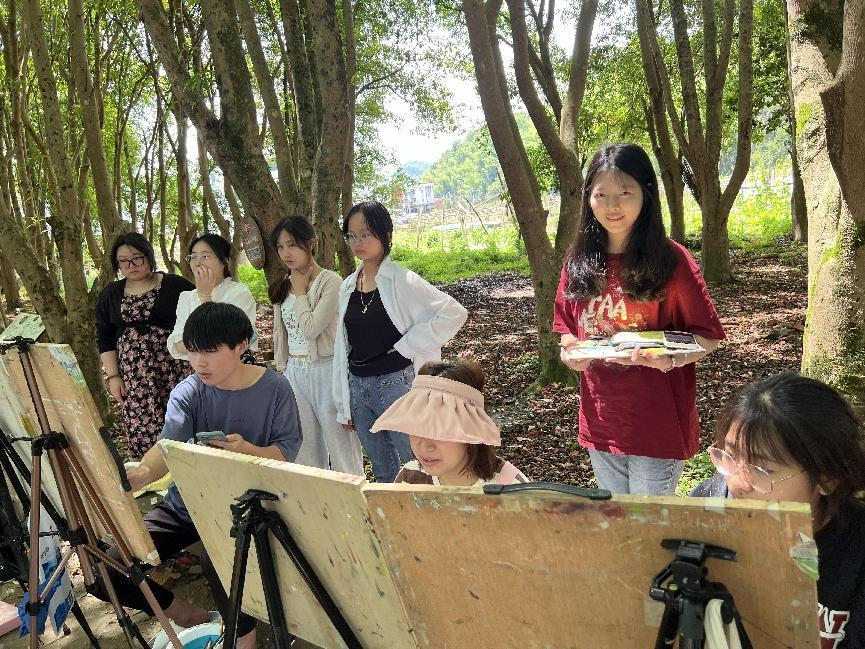 2023级建筑室内设计专业的高有杭、广敏、向薇洁、杜岷洪、谢志华五名同学合作进行了水粉风景联画创作。范莺月、蒋妍两名同学合作进行了风景速写联画创作。