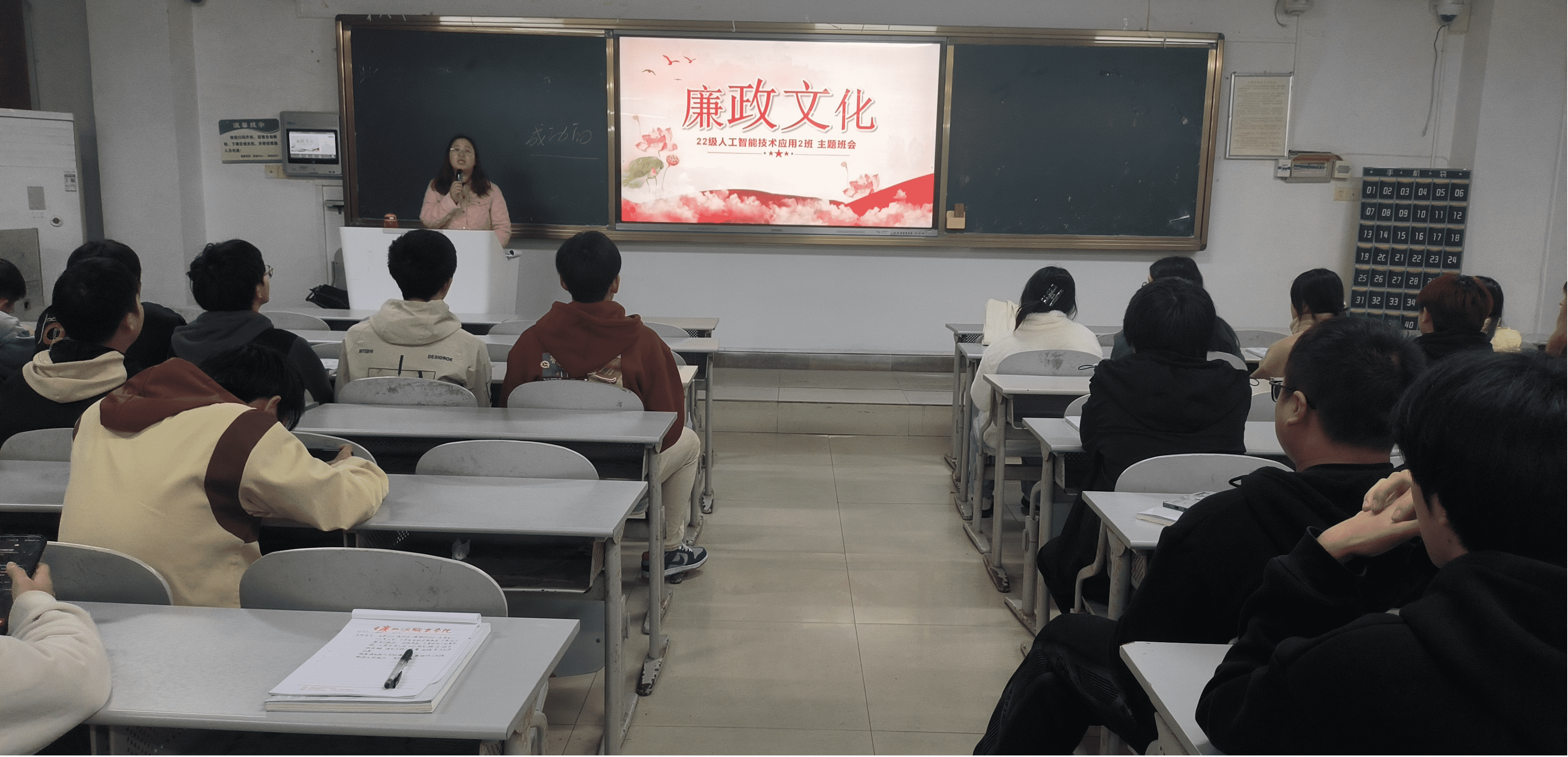 为了深入学习贯彻习近平新时代中国特色社会主义思想和党的二十大精神,坚定不移听党话、跟党走,立大志、明大德、成大才、担大任,让学生们懂得廉洁是人生道路上一个永远的道德准则、增强学生以德立身、清正廉洁的意识,提高道德修养和法制观念,2023年11月,人工智能学院党总支全院68个班级,开展“廉洁文化进班级”主题班会活动。