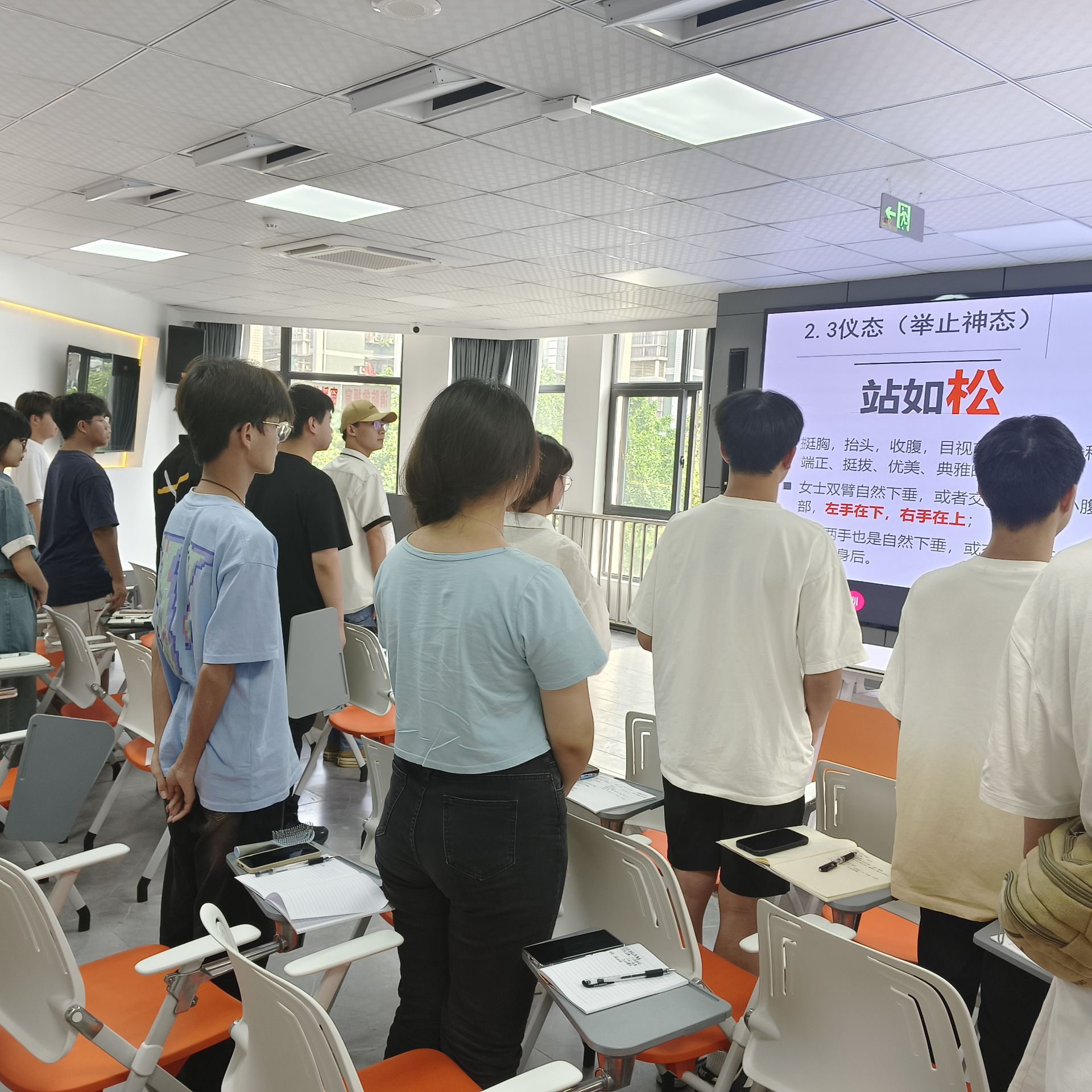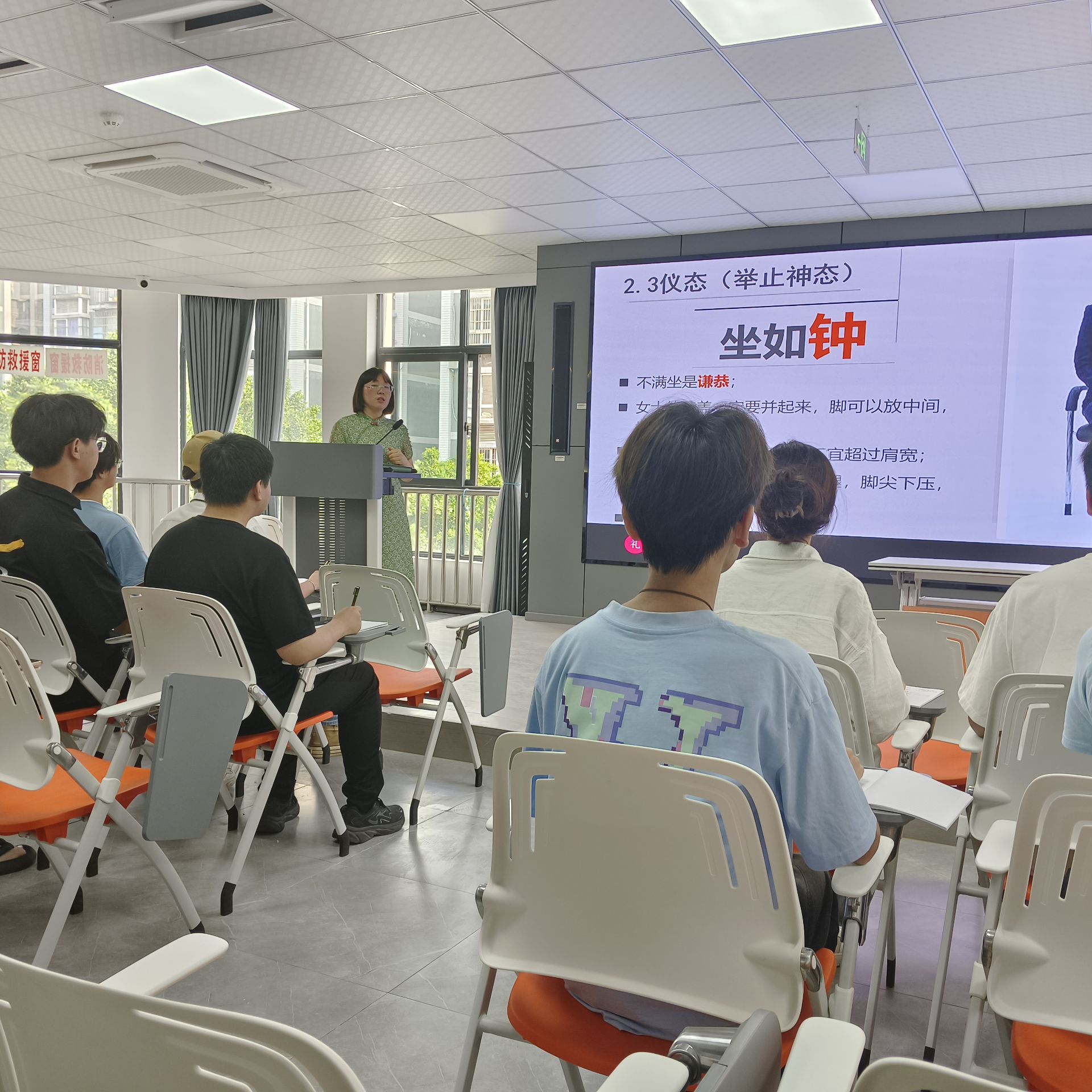 为了学习贯彻党的二十大精神,培养学生干部良好的行为规范,提升学生干部礼仪素养,塑造学生干部的良好形象,进一步发挥学生干部的先锋模范带头作用。2024年5月15日,人工智能学院第一期先锋班在峻德书院4楼演播室开展学生干部礼仪素养专题培训,本次培训由学工科长王蓉主讲。