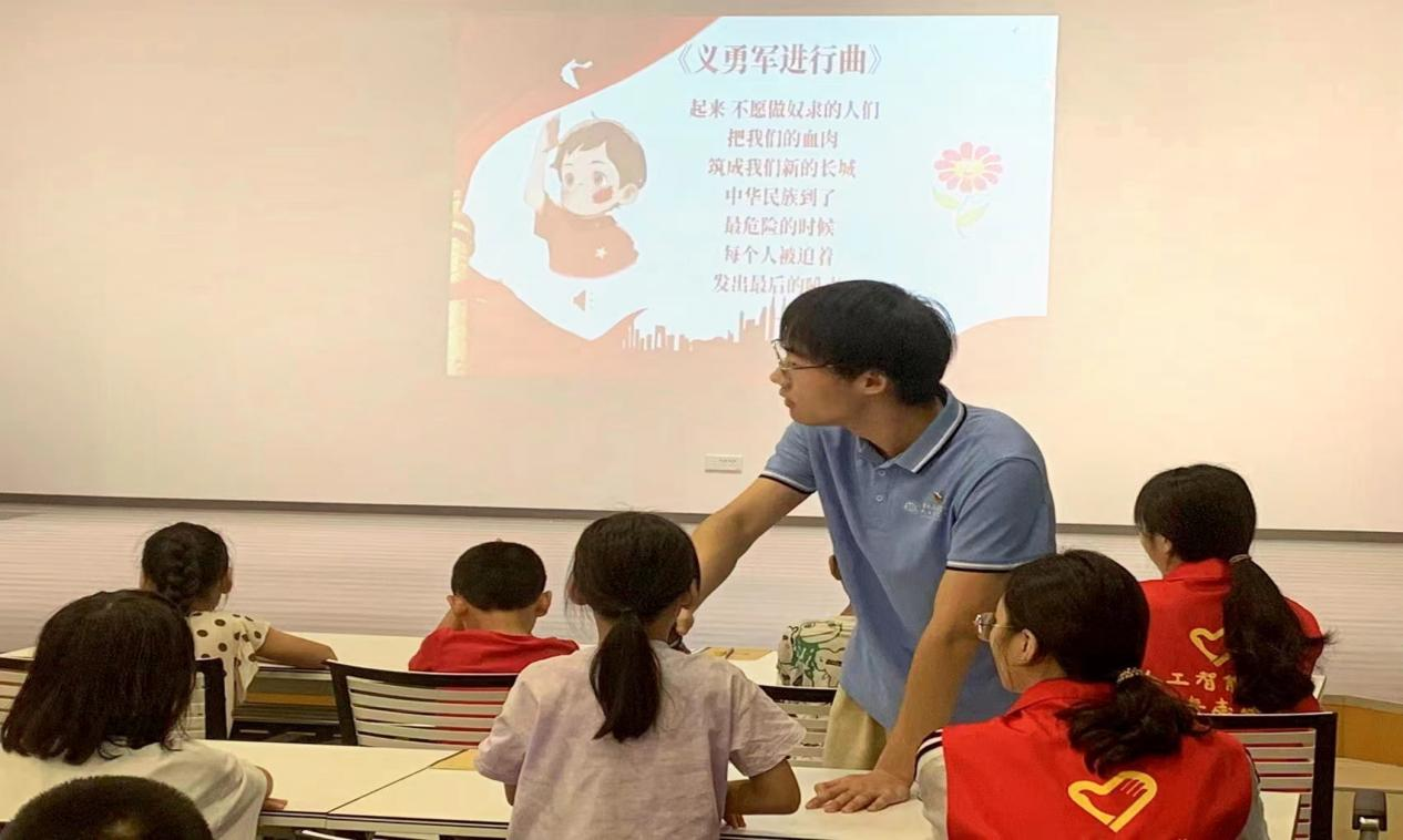 上午九点,慷慨激昂的声音将大家带回到了那段波澜壮阔的历史岁月,讲师向孩子们讲述国歌《义勇军进行曲》的相关知识,让孩子们深刻感受到先烈们的英勇无畏和爱国情怀。让红色基因文化代代相传,爱国主义的种子在孩子们的心田悄然生根、发芽。