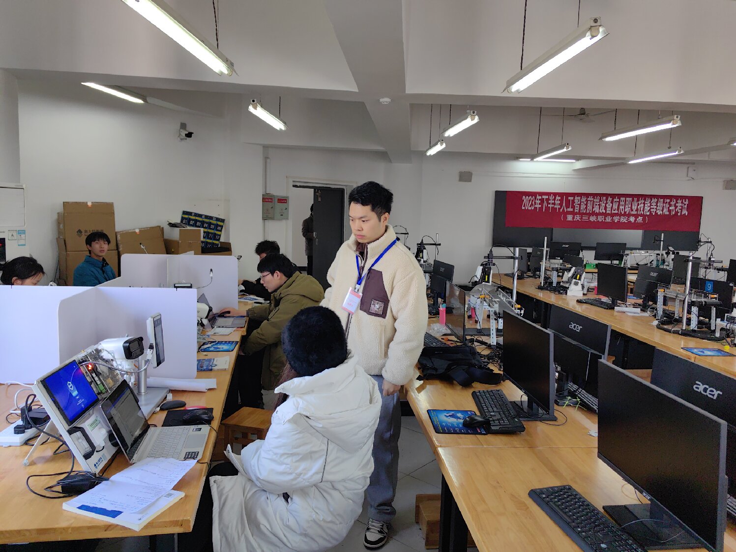 2023年12月23日至24日,人工智能学院人工智能技术应用专业开展了为期2天的1+X等级考试认证工作,本次考证共有50名同学参与,分为理论考试和实践操作考试两个阶段完成。 图1 同学们正在开展理论考试 本次考试总共分五轮完成,考试时间为每轮90分钟。考试期间,同学们积极应考,在答题过程中表现的实践技能非常娴熟。 图2 同学们正在进行实践操作考试 经过两天的辛苦奋战,人工智能前端设备应用(中级)1+X认证考试...