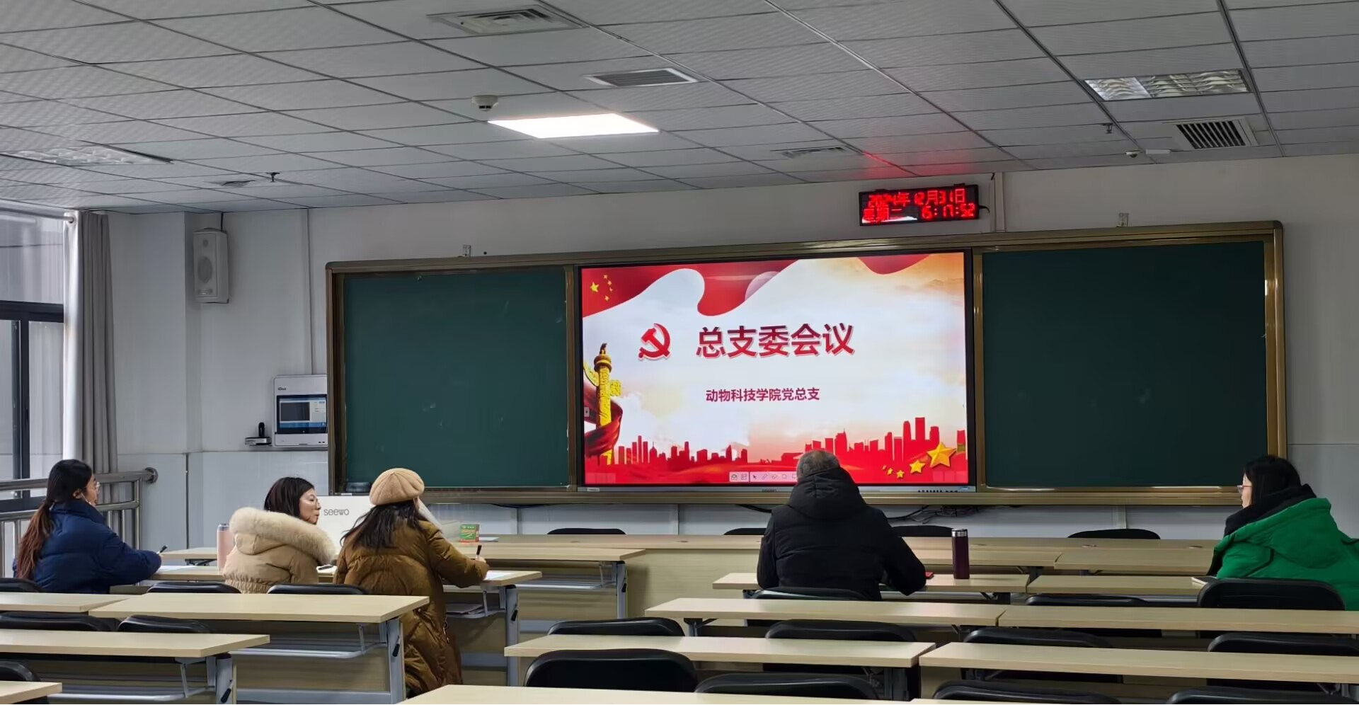 2024年12月30日下午,动物科技学院党总支在动科414开展12月“三会一课”和主题党日活动。会议由学校党委委员、动科党总支书记熊辉俊主持,党总支副书记李思琪及总支委员参会。