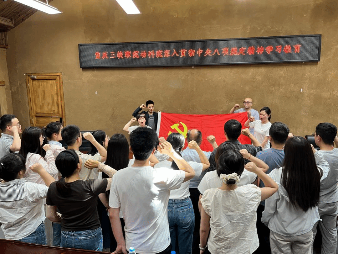 活动最后,全体党员在鲜红党旗的见证下,庄严举起右拳,重温入党誓词。“我志愿加入中国共产党……”誓言铿锵,响彻现场,这不仅是对入党初心的回溯,更是对未来行动的郑重承诺。宣誓结束后,大家合影留念,将这一神圣时刻定格。此次重温入党誓词,进一步坚定了党员们的理想信念,强化了责任担当,激励他们在推进中国式现代化的征程中,不忘初心,砥砺前行,为学院党建与业务工作的深度融合注入强大精神动力。