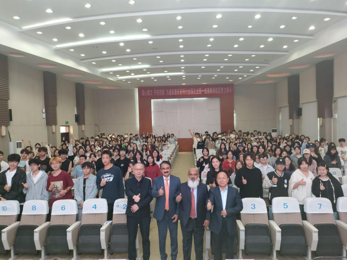 10月22日,Monhannad Farooque Hassan校长和Zahid Iqbal Rajput院长在我校动物科技学院院领导、专业骨干教师的陪同下先行前往动物科技学院的生猪大数据中心、小动物外科手术室、CT中心、中兽医加工处理和展览馆、生猪科技馆等实验实训室开展参观调研。随后,Mohammed Farooque Hassan校长和Zahid Iqbal Rajput院长与动物科技学院领导、老师进行了座谈和交流。双方就校、院办学发展历史、专业建设、师资队伍、实验实训条件、人才培养和国际交流合作等进行了详细介绍。Mohammed Farooque Hassan校长对我院良好的办学基础条件、优越的师资队伍、高质量的人才培养途径、丰富的教学科研成果给予了充分的肯定和高度的评价,表示非常期待与我院深入开展学生的联合培养项目,希望双方携手共进加快推进畜牧兽医专业职业教育国际合作与交流,拓宽中巴合作办学路径,探索“中文+职业技能”的发展模式。在座谈交流结束后,Mohammed Farooque Hassan校长以“巴基斯坦畜牧兽医教育与中国教育合作的实践”为题给我院300余名师生作专题讲座,他详细的介绍了巴基斯坦畜牧兽医类的专业教育的类型、层次、专业设置和课程设置、师资队伍等情况,并以实际案例介绍以往巴基斯坦沙希德·贝纳齐尔·布托畜牧兽医大学与中国开展的留学生实习阶段联合培养的相关项目和教师互访的国际交流实践。
