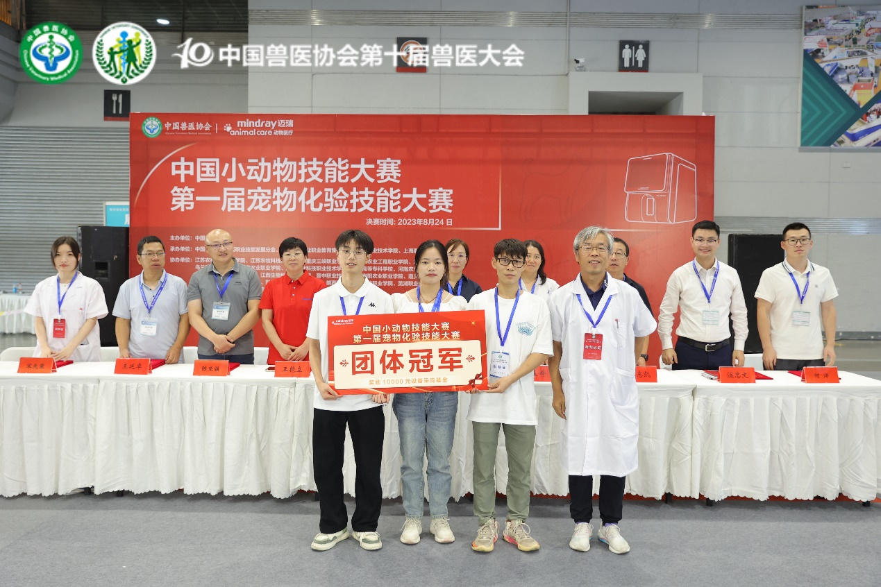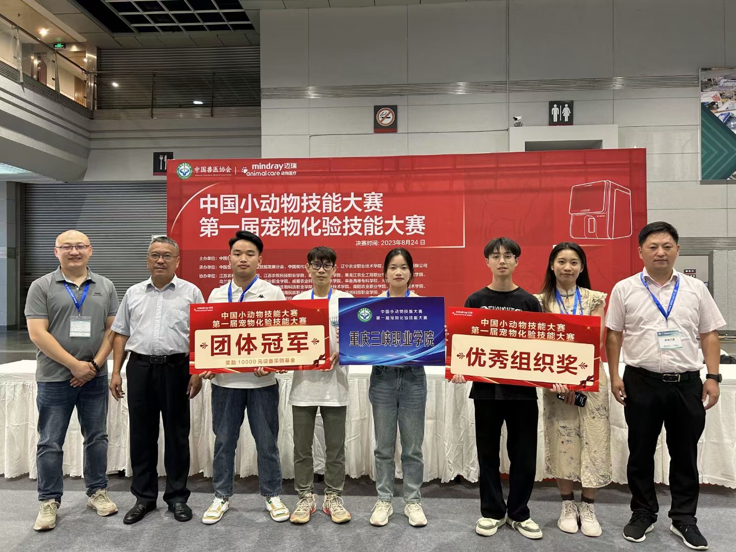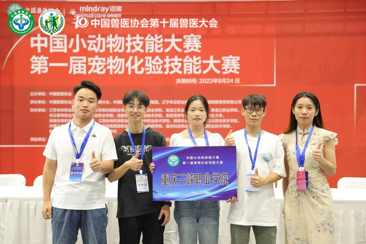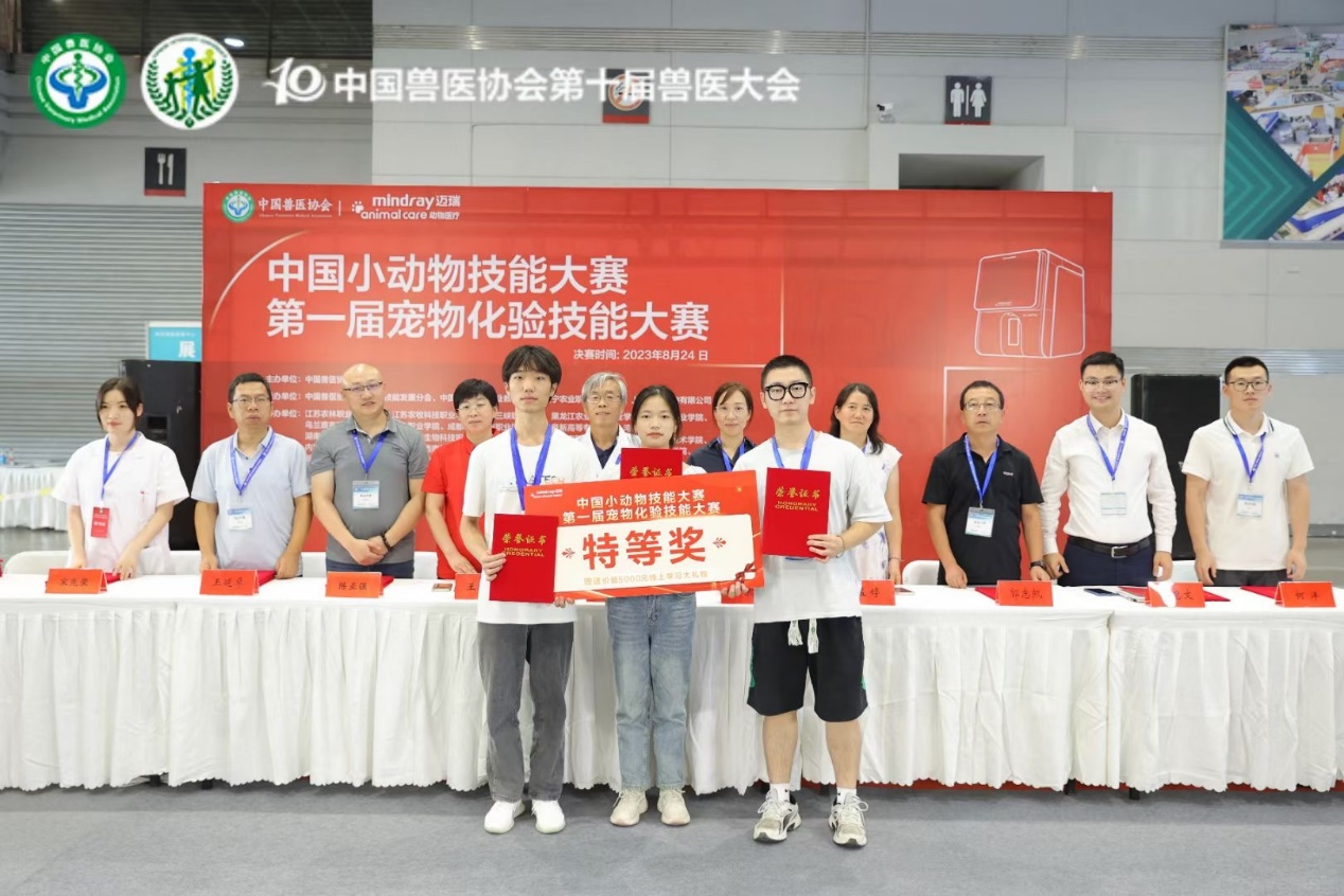 2023年8月24日,由中国兽医协会主办,中国兽医协会兽医职业技能发展分会、中国现代农业职业教育集团、辽宁农业职业技术学院、上海朋朋宠物有限公司承办的中国小动物技能大赛第一届宠物化验技能大赛在南京第十届兽医大会上举行。由我院吕倩老师、梁明举老师指导的钱琳同学荣获特等奖(个人赛第一名)、毛叶鑫同学和李科言同学荣获一等奖(个人赛第四、五名),同时荣获团体冠军(团队赛第一名)。吕倩、梁明举老师均荣获优秀指导老师奖。