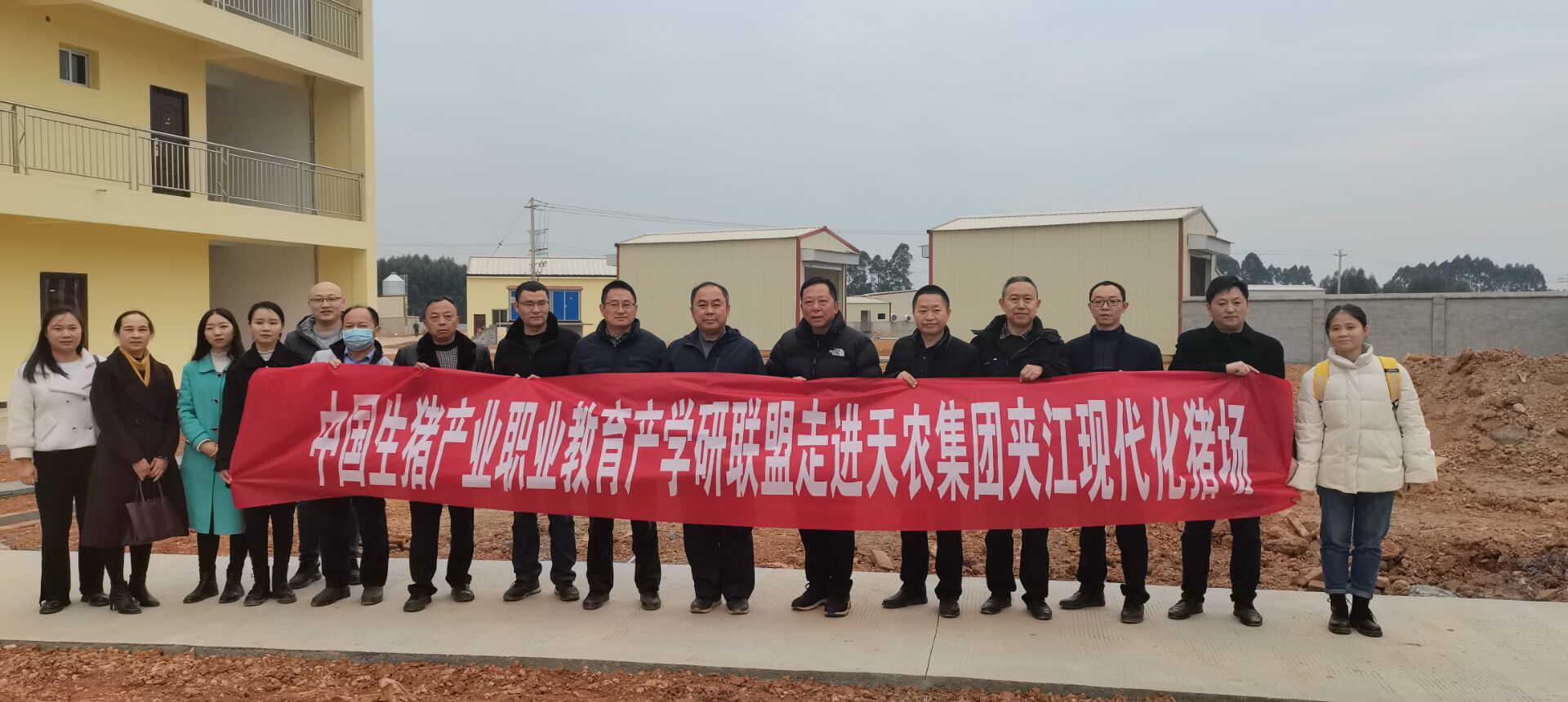 12月17日,在学校牵头组织下,中国生猪产业职业教育产学研联盟部分领导及教师代表走进天农集团。学校党委书记、联盟理事长陈章同志,动物科技学院党总支书记、院长张传师、副院长陈亚强以及教师代表何航、喻维维陪同参观学习;眉山职业技术学院徐井万教授带领农业技术系主任杨加琼、畜牧兽医教师方和俊;南充职业技术学院农业科技学院王怀禹教授、内江职业技术学院张孝福主任等联盟教师一同参观走进了天农集团夹江现代化猪场。