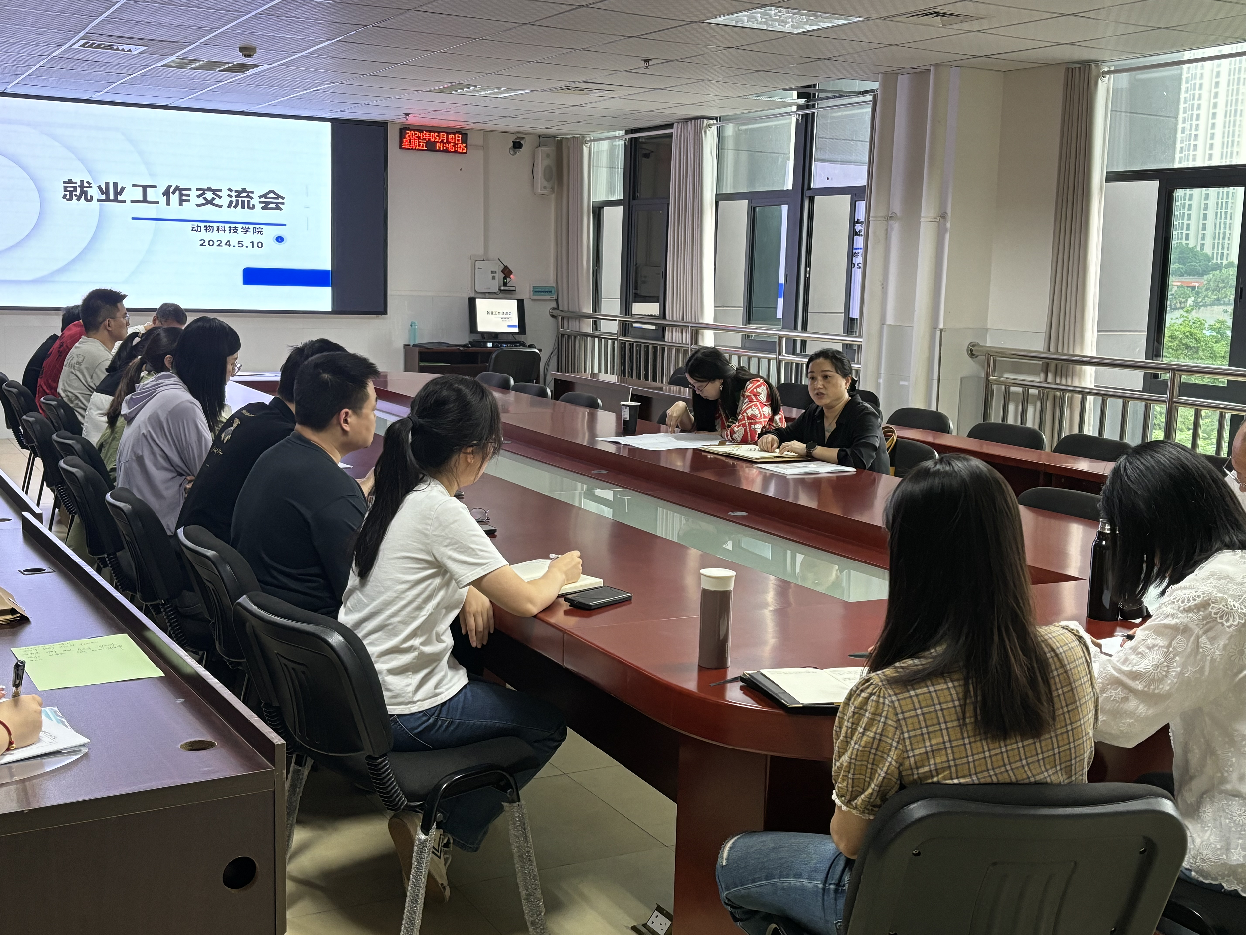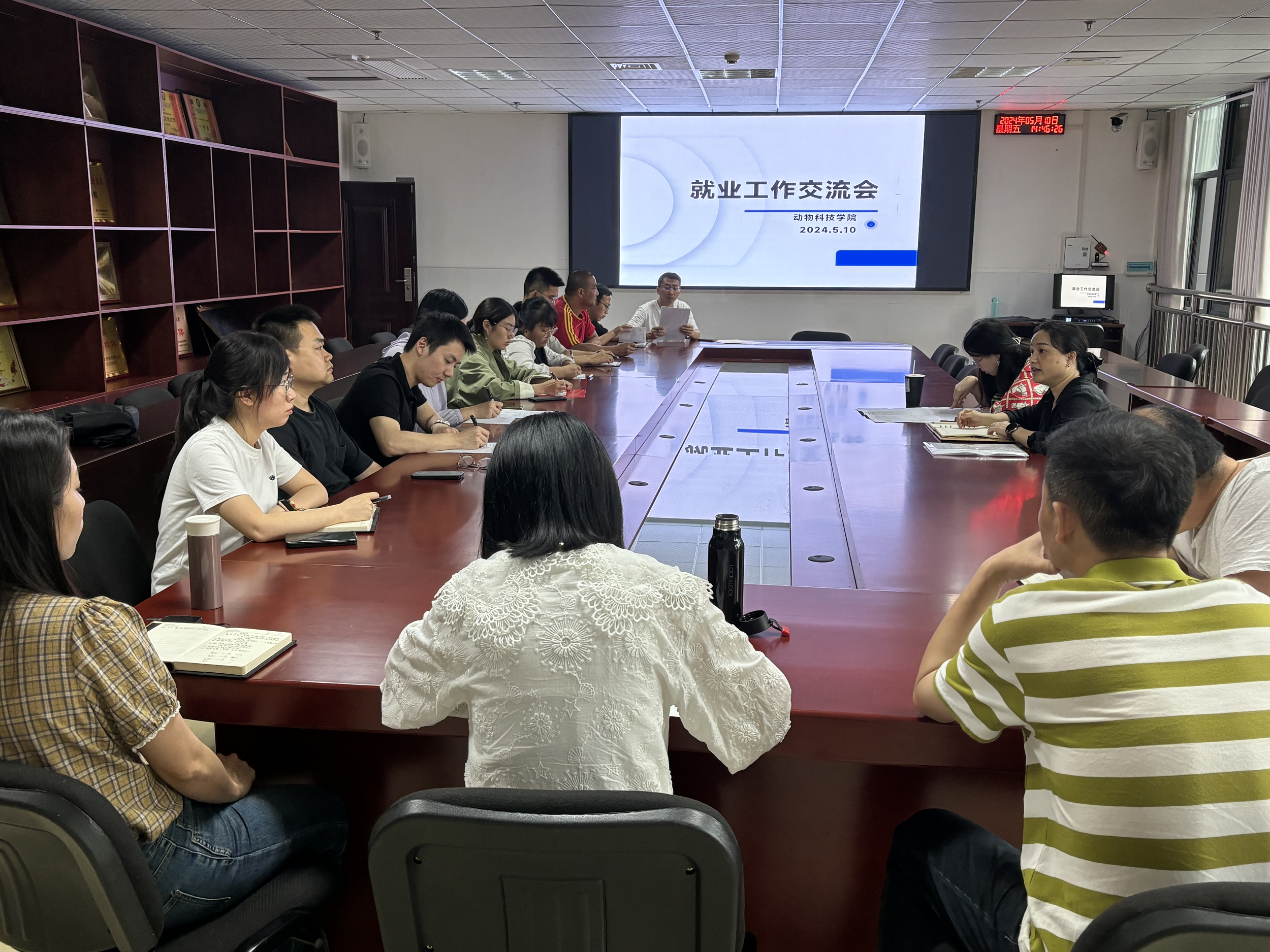 为了掌握我院2024届毕业生的就业情况及存在问题,提升就业指导和服务水平,推动我校毕业生就业工作的顺利推进。2024年5月10日下午,动物科技学院召开辅导员就业工作交流促进会,招生就业处副处长赵婵娟、动物科技学院党总支副书记李思琪,以及动物科技学院所有毕业班辅导员参会。此次会议由李思琪副书记主持。