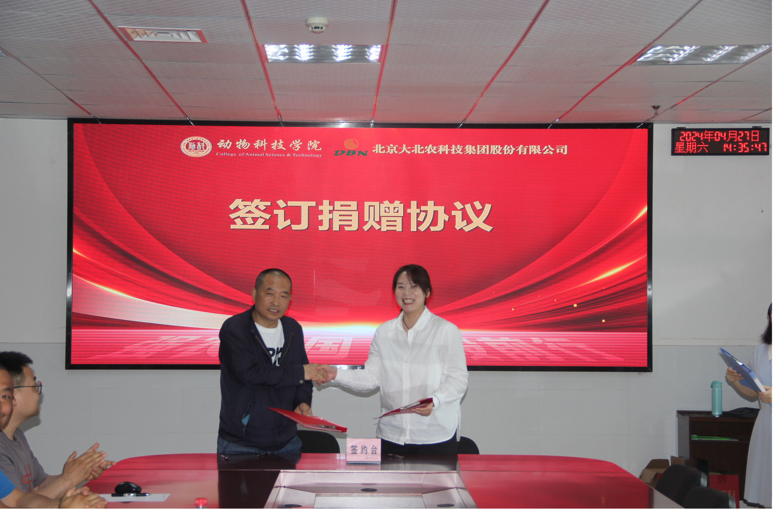 2024年4月27日下午,动物科技学院在现代畜牧大楼412会议室举行大北农励志奖学金捐赠暨颁奖仪式,大北农猪饲料集团重庆区创业人才总监方维维、大北农猪饲料集团重庆区招聘主管唐莹、动物科技学院党总支副书记李思琪、副院长向邦全、学工科长扎西丹珍,部分教师代表和获奖学生参加了本次会议。会议由动物科技学院教学干事龚伟主持。