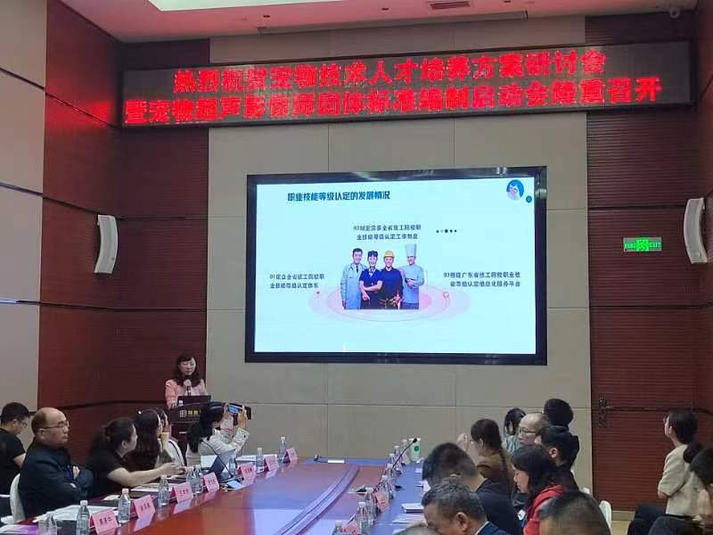 会议主要内容有院校人才培养方案研讨、宠物超声影像师团体标准介绍及征求意见、宠物超声影像师团体标准编制启动仪式等。会议上专家们做了精彩的分享报告,如广州市技师学院陈实副校长分享了新职业、新工种、新标准-以广东省职业等级认定规范编制及题库开发为例的经验,中国兽医协会刘秀丽副秘书长阐述了宠物超声影像师团体标准立项目的及其对行业人才培养的意义等。学院王晓艳副教授做了关于校企合作制定人才培养方案经验分享的报告。