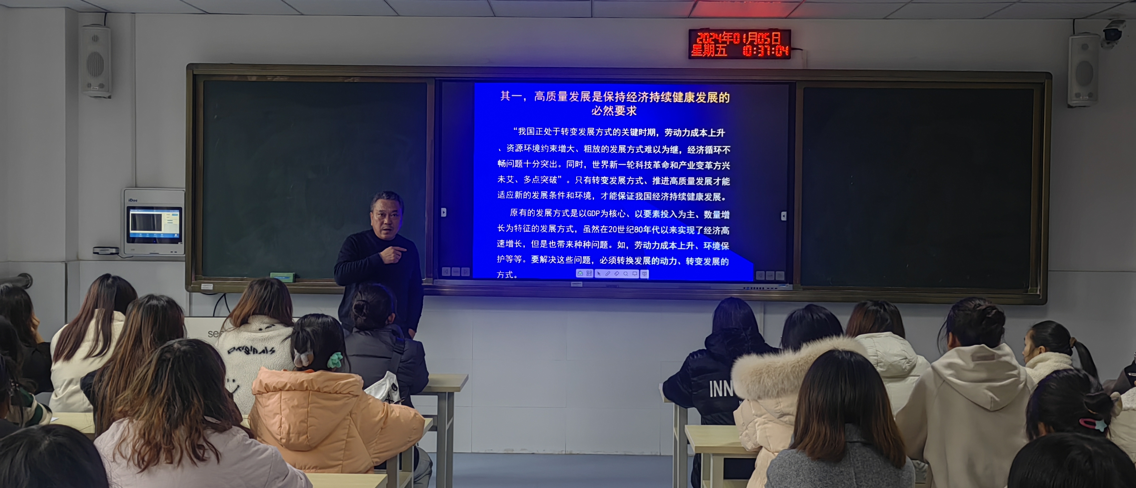1月5日上午,李炯光院长在畜牧科技大楼509教室以《深刻理解高质量发展的重要意义与内涵》为题,分别为动物科技学院2023级畜牧兽医6班、动物医学4班学生讲授两堂思政课,动物科技学院党总支副书记李思琪主持思政课。