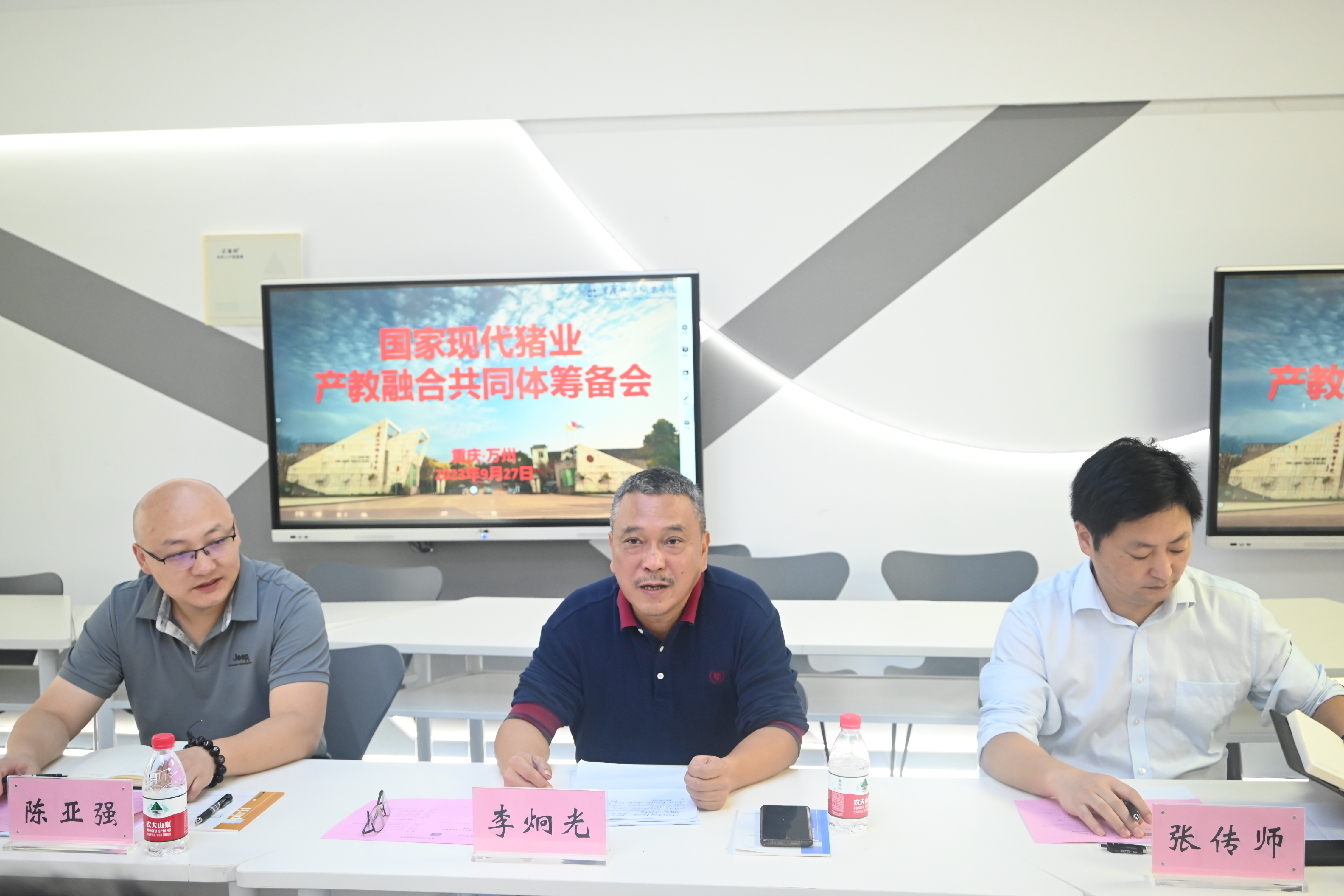 随后,动物科技学院党总支书记、院长张传师汇报了共同体筹备情况,主持讨论了共同体章程初稿、拟定理事会名单、拟定成立大会方案以及共同讨论了拟邀请嘉宾名单。最后,与会嘉宾共同学习了教育部行业产教融合共同体建设指南,讨论了申报国家产教融合共同体事宜。