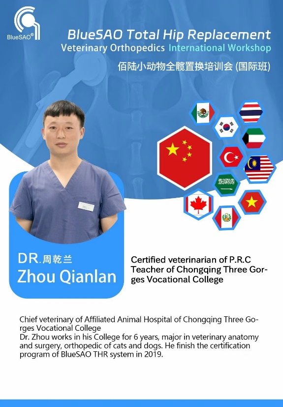 2023年7月18-23日,我院全国轻工技术能手周乾兰老师受邀参加BlueSAO 全髋置换THR 国际班授课!来自10个国家的二十四名骨科医生齐聚合肥,让世界认识中国小动物骨科技术。