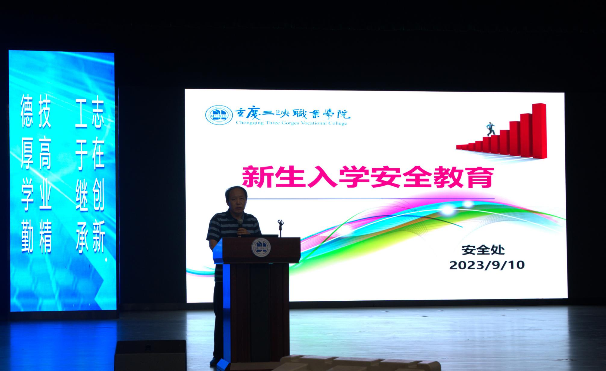 随后安全处副处长扶永辉开展入学安全教育讲解,内容包括:防诈骗、防盗器、防火电、防意外以及其它问题。