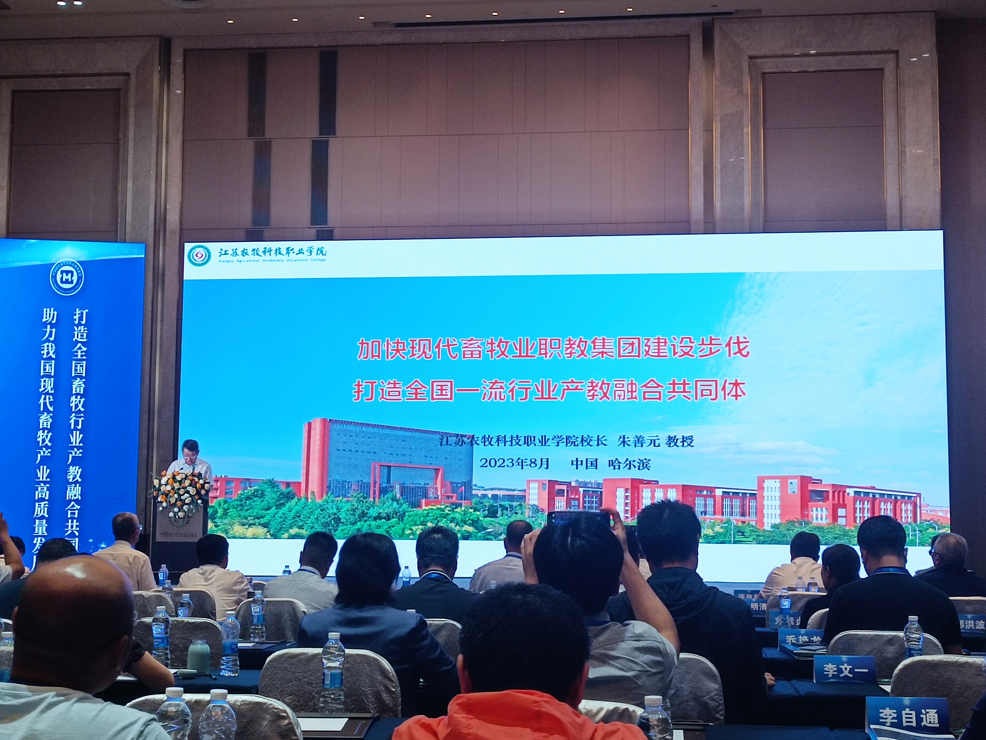 8月9日-11日,“由中国现代畜牧业职教集团(校企联盟)主办、黑龙江职业学院承办的“第六届国际畜牧业发展及技术研讨会、中国现代畜牧业产教融合共同体成立大会、中国现代畜牧业职教集团(校企联盟)三届一次理事会”在哈尔滨隆重举办。来自全国36所畜牧类高职院校的领导、管理人员和18家相关企业的180余位嘉宾参加会议。教育部职成司任占营处长出席会议并作主旨报告,我院动物科技学院党总支书记、院长张传师带队参加。