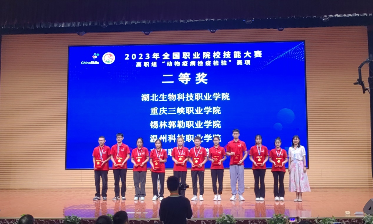7月12-14日,2023年全国职业院校技能大赛动物疫病检疫检验赛项(高职组)在山东潍坊举行。我院指导老师李思琪、尹艳玲带队参赛。经过激烈角逐,彭龙、李若娴同学荣获二等奖。