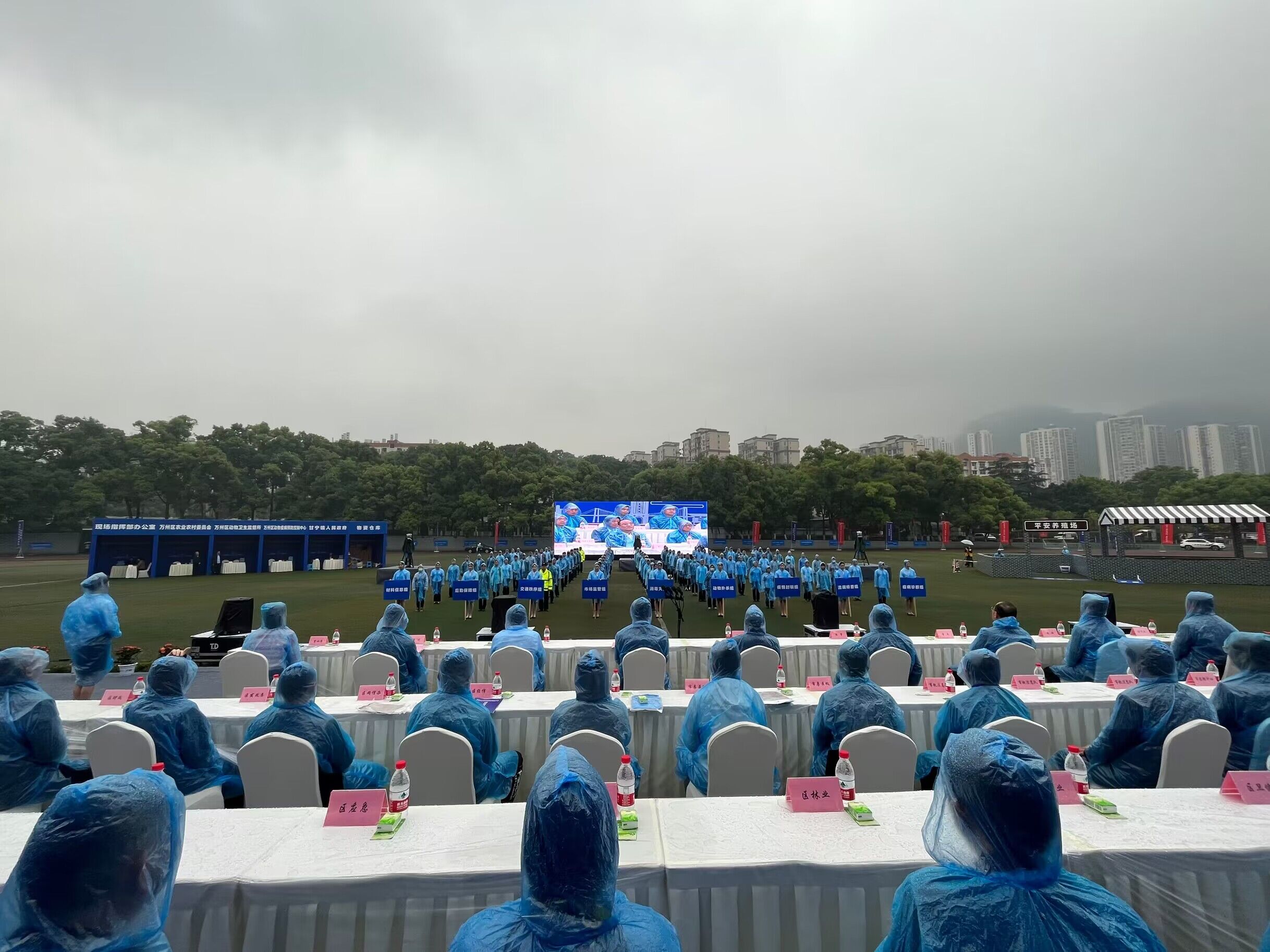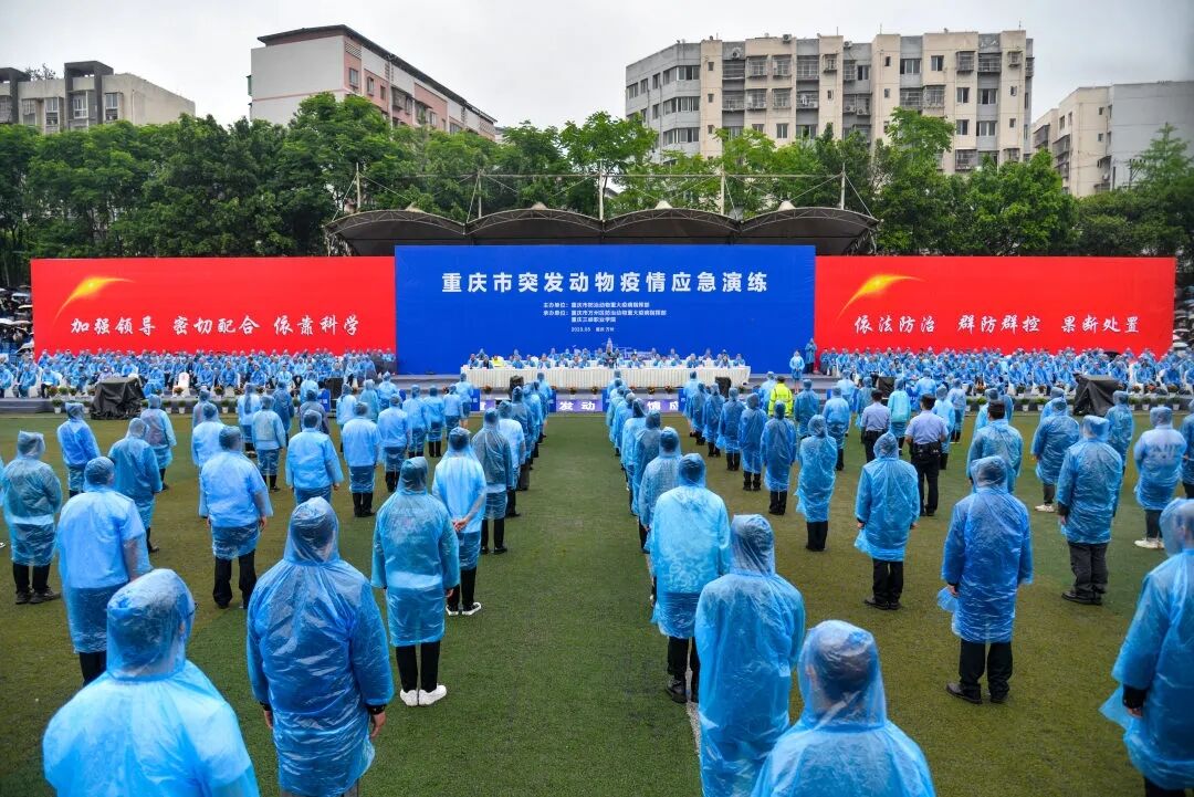 2023年5月9日星期二,由重庆市防治动物重大疫病指挥部主办,重庆市万州区防治动物重大疫病指挥部、重庆三峡职业学院承办的重庆市突发动物疫情应急演练在重庆三峡职业学院顺利举办。市农业农村委副主任詹任明、副区长乔乾麟、重庆三峡职业学院党委书记陈章出席演练活动,各级领导、学院老师、学生共计1500余人观摩此次演练。