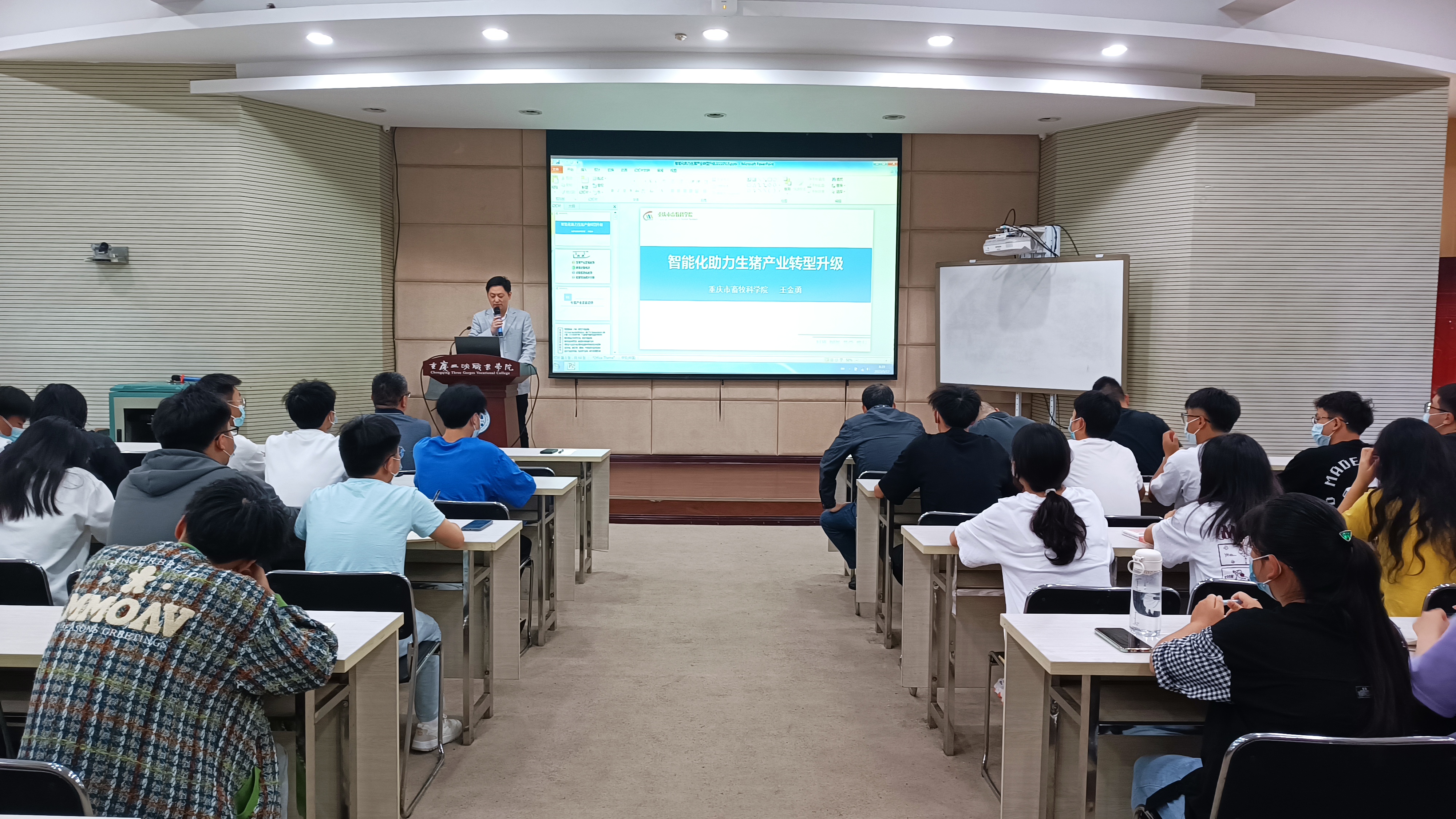 5月17日,我院邀请重庆市畜牧兽医学会理事长王金勇研究员到校开展《智能化助力生猪产业转型升级》专题讲座,讲座由动物科技学院党总支书记、院长张传师主持,动物科技学院师生100余人参加。