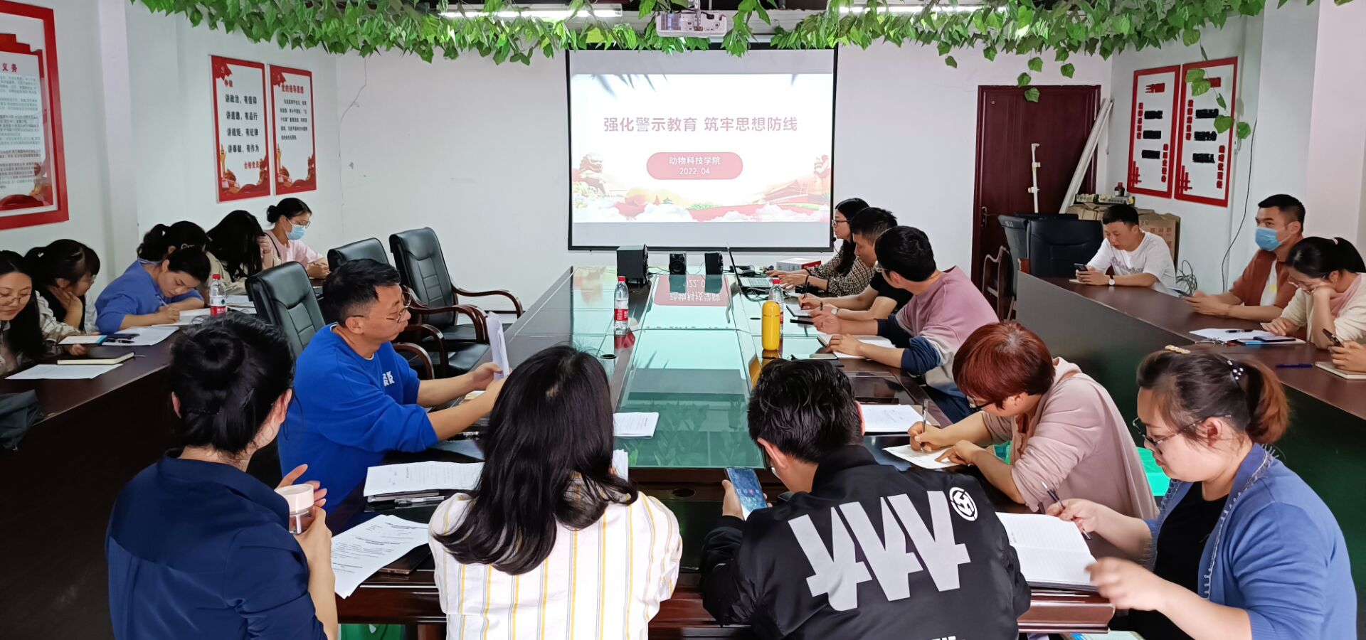 4月26日,动物科技学院党总支组织各支部党员和所辖教师开展警示教育。本次学习主题为“强化警示教育 筑牢思想防线”,并由党总支纪检委员张崇英主持。