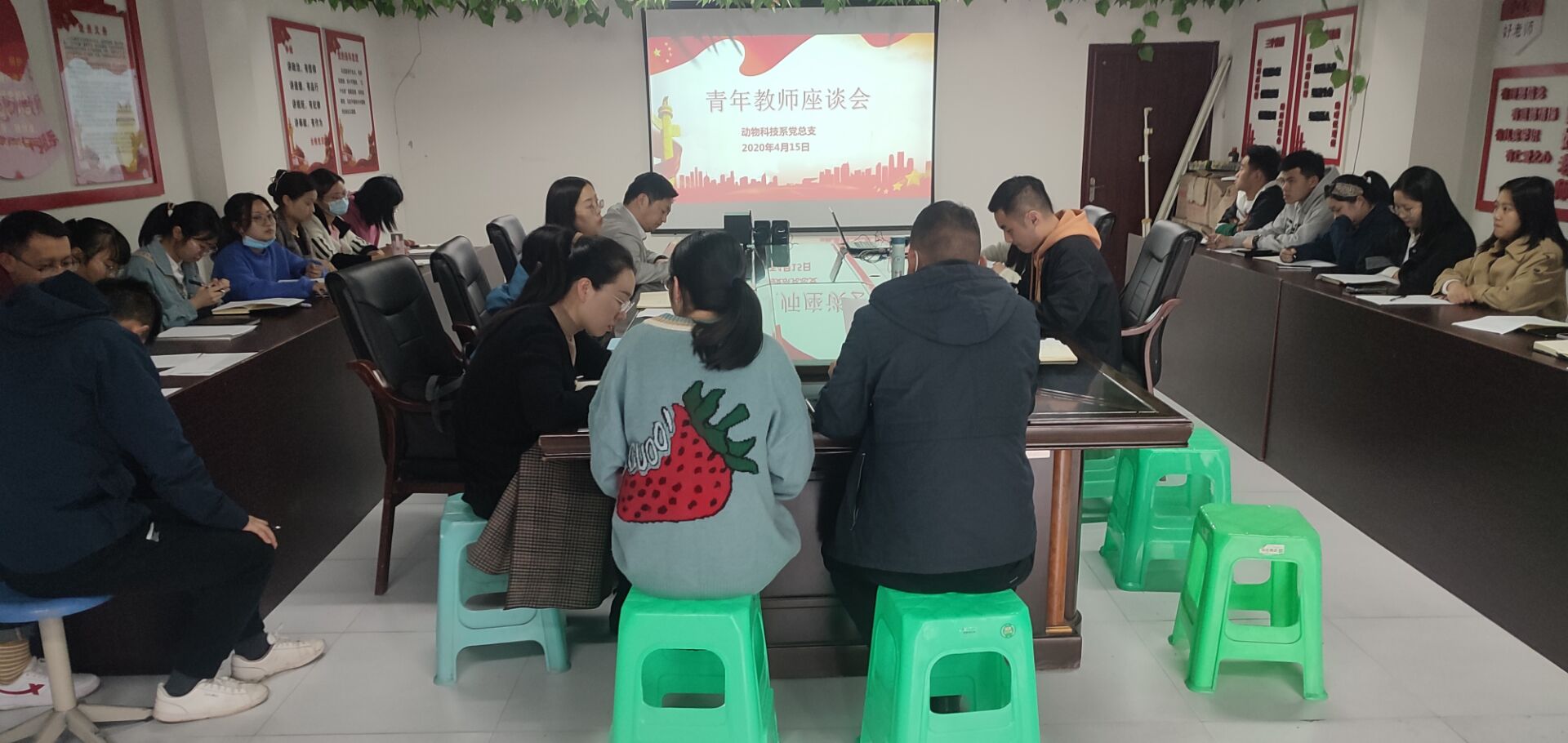 2022年4月15日下午,动物科技学院党总支组织召开青年教师座谈会。会议由党总支副书记李思琪同志主持,党总支书记、院长张传师,纪检委员张崇英以及30余名青年教师参会。