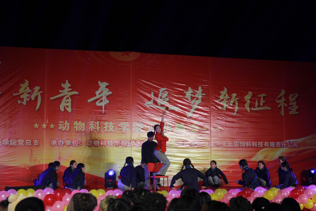 将今夜点亮,将今晚畅享,一次次身韵融合的舞台秀,一句句铿锵有力的诗朗诵,一位位踏着轻盈的舞者,一首首动听悦耳的歌声,吟唱难忘的岁月,记录青春的跳跃,凝聚心头不变的情节;回味熟悉的旋律,演绎时代的激越,回荡情怀不改的真切,这是激情燃烧的岁月,是清香四溢的硕果,是我们用热情站在青春的起跑点,用奋斗和方遒书写动物科技学院新的篇章与画卷!