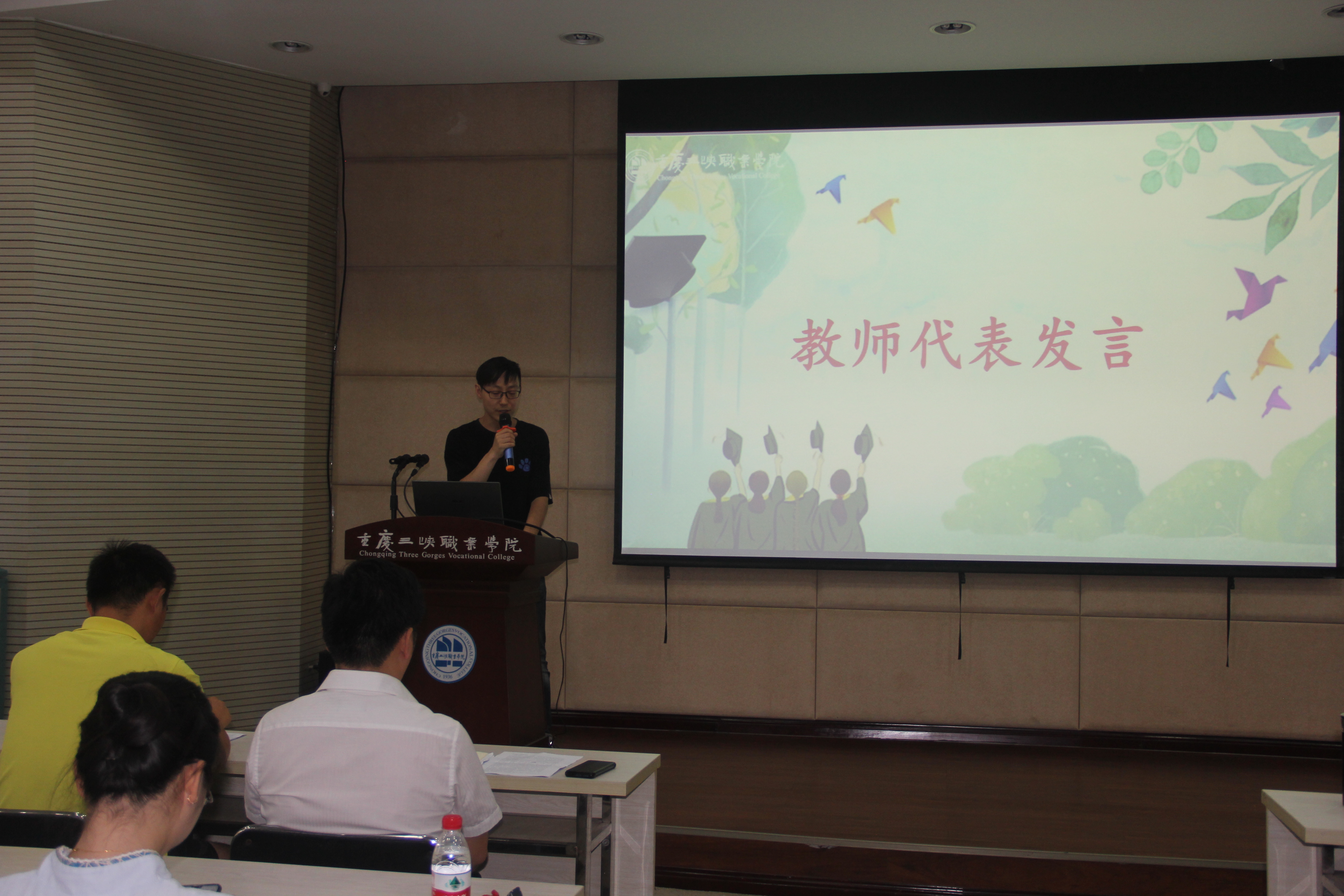 宋杨老师作为教师代表发言,他希望毕业生们将知识和实践融会贯通,练就过硬本领,提高干事干业热情,并用一首青春的诗与毕业生们告别,祝愿他们前程似锦,归来仍是少年!