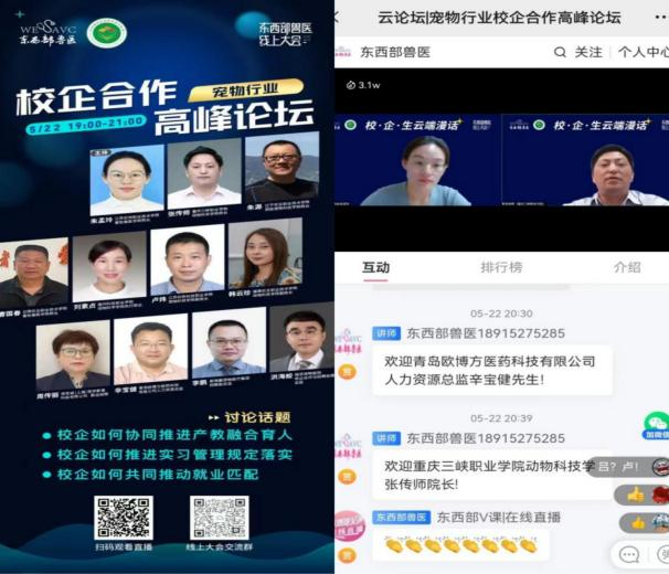2021年5月22日,学校与江苏农林职业技术学院、辽宁农业职业技术学院、福建农林职业技术学院、江苏农牧科技职业学院、温州科技职业学院、云南农业职业技术学院等多所职业院校、新瑞鹏医疗宠物集团、瑞派宠物医院、谛宝诚(上海医学影像科技有限公司)、重庆华裕耀新农业科技有限公司、天农集团、青岛欧博方医药科技有限公司等多家单位召开校企合作高峰论坛,共同探讨如何建设实习实训管理制度。