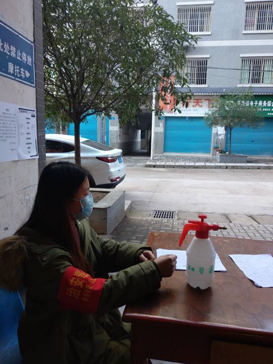 今天的太阳格外的温暖,朱宁丽到达工作地点后了解到工作主要是登记进出本楼栋人员的手机号,体温,有无咳嗽情况等,并强调尽量不出门,需要购买生活用品的家庭派一名抵抗力强的同志出门采购。因为政府宣传力度较大,加上居民们的自觉所以进出的人员并不是很多。在填写登记表的时候她了解到还有个别居民有下楼晒太阳的情况经过她对居民关于病毒的普及都纷纷上楼自行回家。