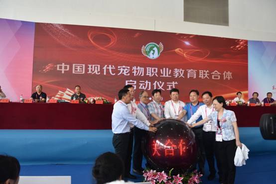 我院作为联合发起单位,中国现代宠物职业教育联合体举行了成立大会,陈章书记受邀参加了成立大会,与各高校领导共同启动了启动球。