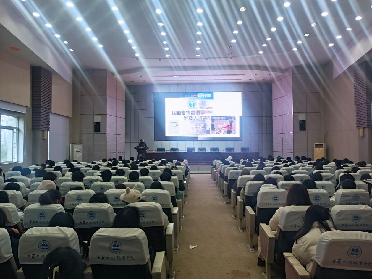 范才良教授从宠物医生、畜牧兽医岗位职责以及我国动物养殖现状出发,为大家分析了我国畜牧兽医事业发展前景,他表示,我国畜牧兽医人才紧缺,前景广阔,激励同学们要立足专业,努力学好理论和实践,为以后就业打好基础。