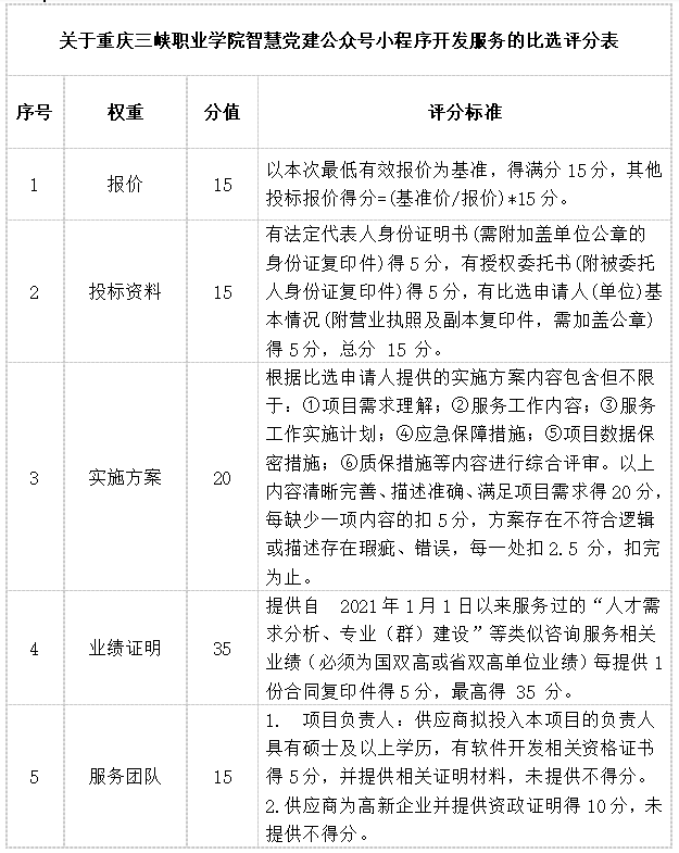 评标方式采用综合评分法,具体评分标准如下表: