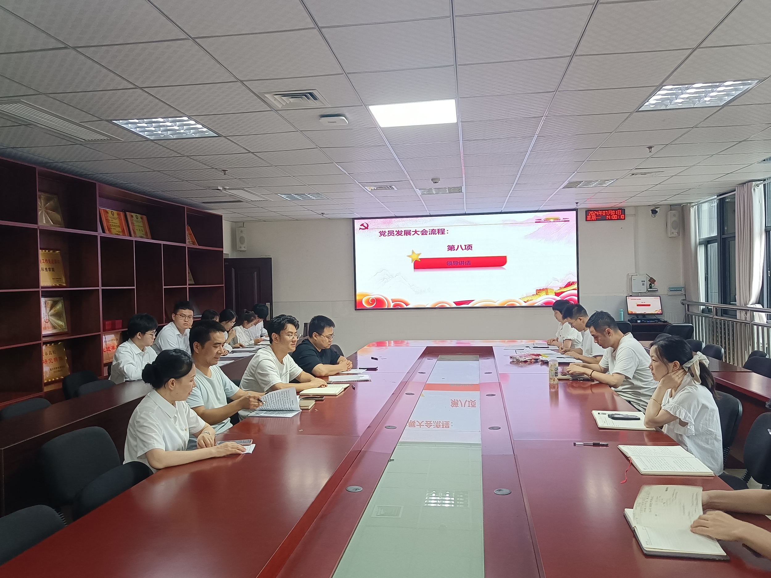 支部书记母治平同志宣布奏唱《国歌》,全体党员、中共预备党员全体起立,怀着满腔热血合唱《国歌》。支部书记母治平宣布转正党员名单,各申请人按照流程依次进行思想汇报,包括过去一年思想、学习、生活与工作等方面的表现情况,也指出了缺点和今后努力的方向,表明自己对转正后的态度与决心。