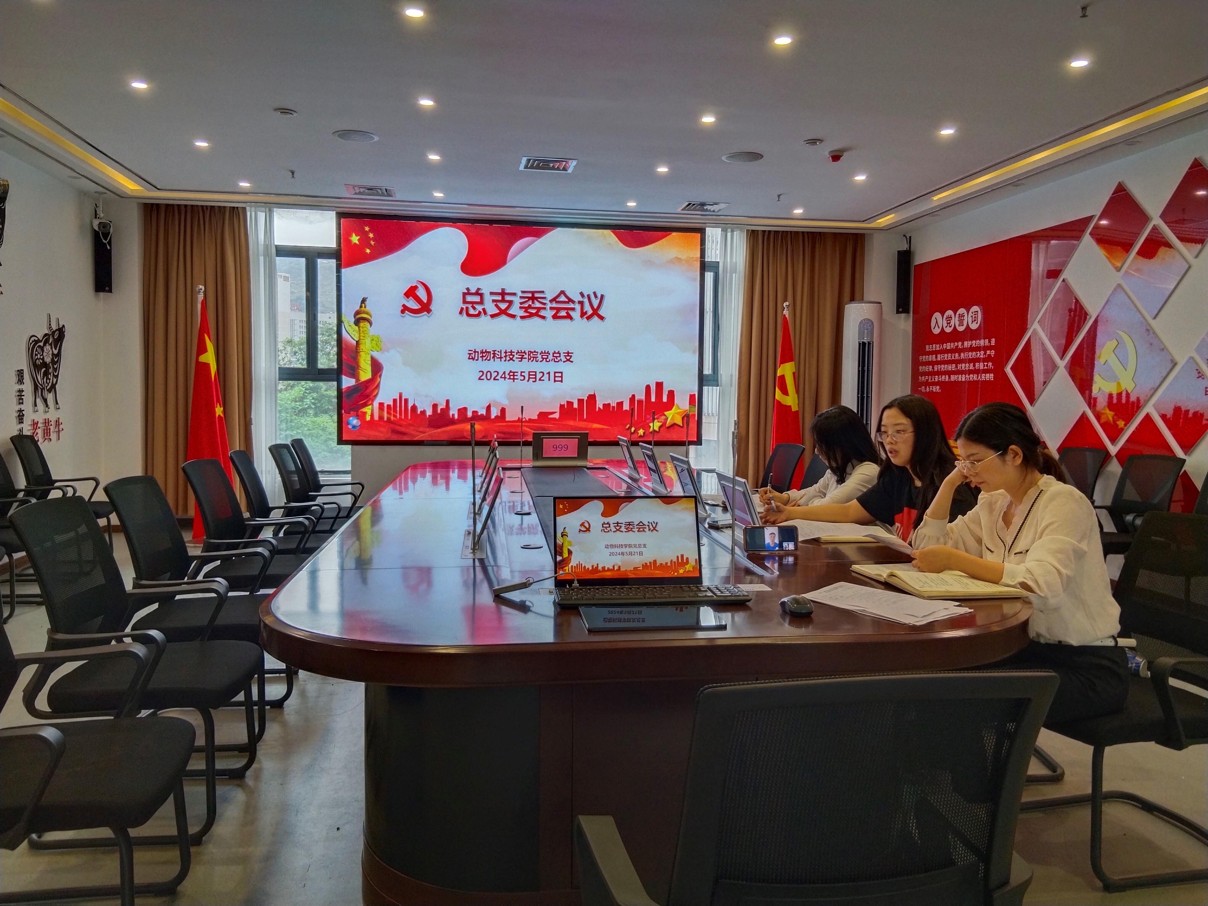 2024年5月21日下午3:00,动物科技学院党总支在动科三全育人工作室开展5月“三会一课”和主题党日活动。会议由党总支副书记李思琪主持,总支委员成员参会。