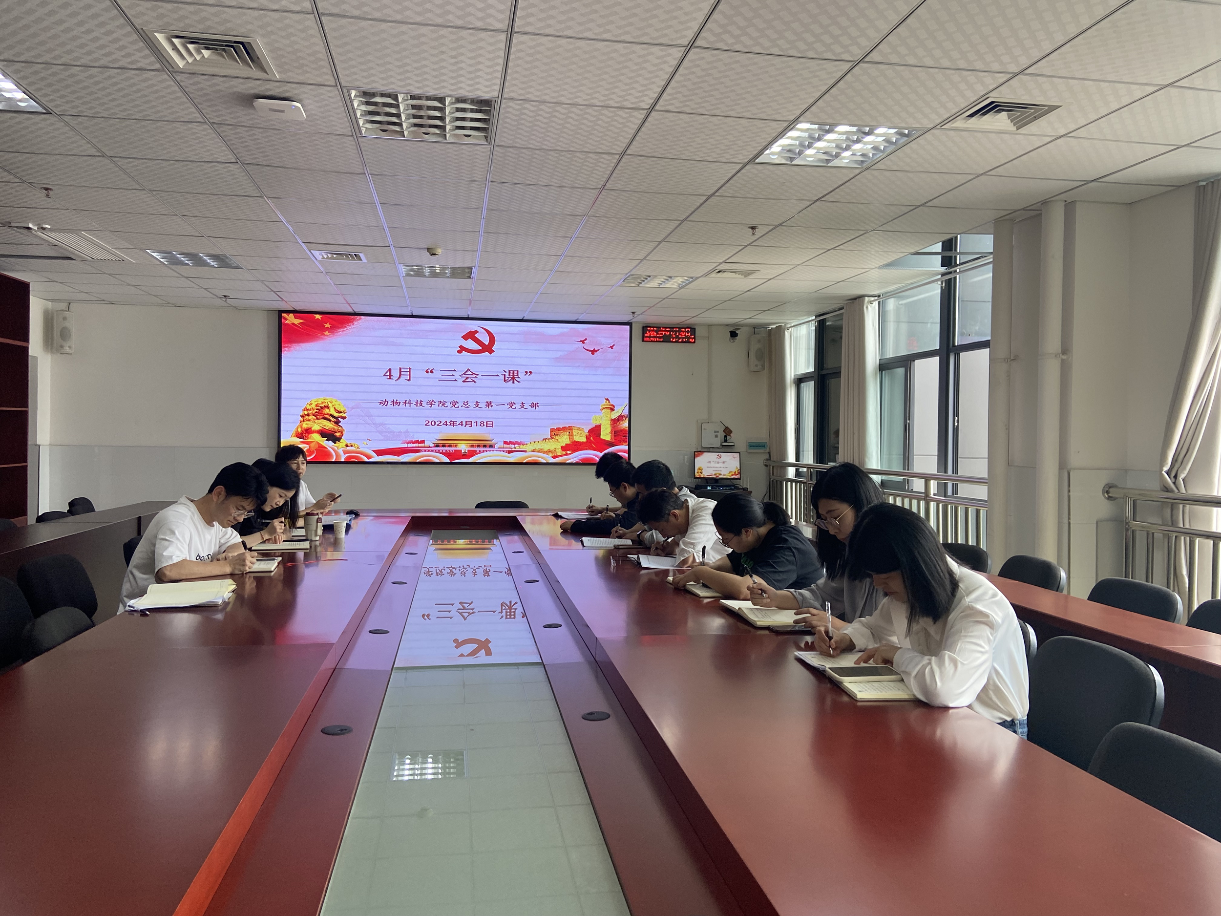 2024年4月18日中午1:30,动物科技学院党总支第一党支部在现代畜牧科技大楼412教室开展了4月“三会一课”及主题党日学习。会议由支部书记母治平主持,一支部教师党员参会。