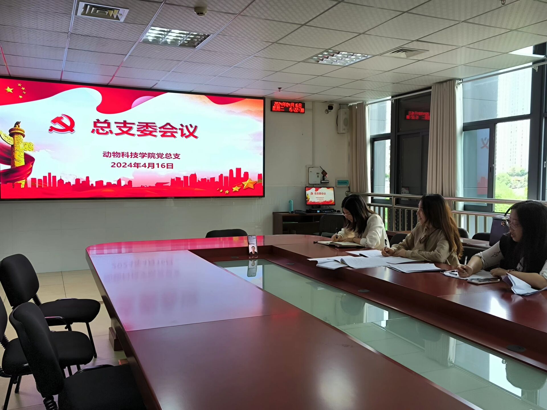 2024年4月16日下午4:30,动物科技学院党总支在现代畜牧科技大楼412教室开展4月“三会一课”和主题党日活动。会议由党总支副书记李思琪主持,总支委员成员参会。