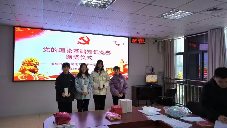 为深入开展学习贯彻习近平新时代中国特色社会主义思想主题教育,增强党性修养,在实践中砥砺前行。2023年12月5日15:30,动物科技学院党总支第一党支部在现代畜牧科技大楼412开展党的理论基础知识竞赛活动,该活动由支部书记母治平主持,一支部党员老师、预备党员、入党积极分子参加此次活动。