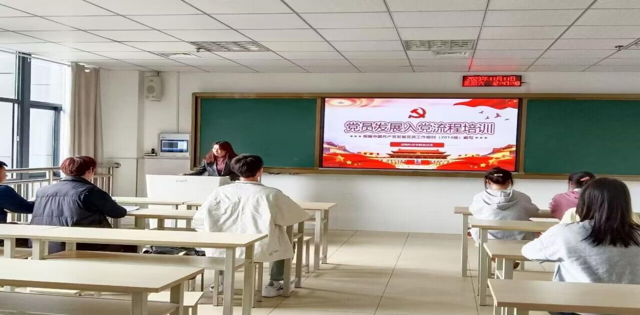 为深入学习贯彻习近平新时代中国特色社会主义思想和党的二十大精神,严把党员队伍的“入口关”,加强对党员发展对象的培养和教育,动物科技学院于2023年11月6日至17日在动科楼607教室对各支部党的发展对象进行了集中培训,此次培训由动物科技学院总支委和支委担任主讲,共有10名发展对象参与学习。